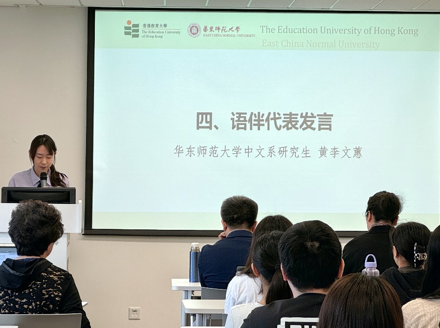 香港教育大学本科生钟纪东同学作为学生代表发言,他期待同学们通过这次项目的沉浸学习,普通话都能达到“二甲”水平,更上一层楼。同时,希望同学们能够在华东师大这个新的环境下积极地学习、生活,观察上海和在香港在学习生活上的差异,有所收获,为将来教书育人打下基础。
