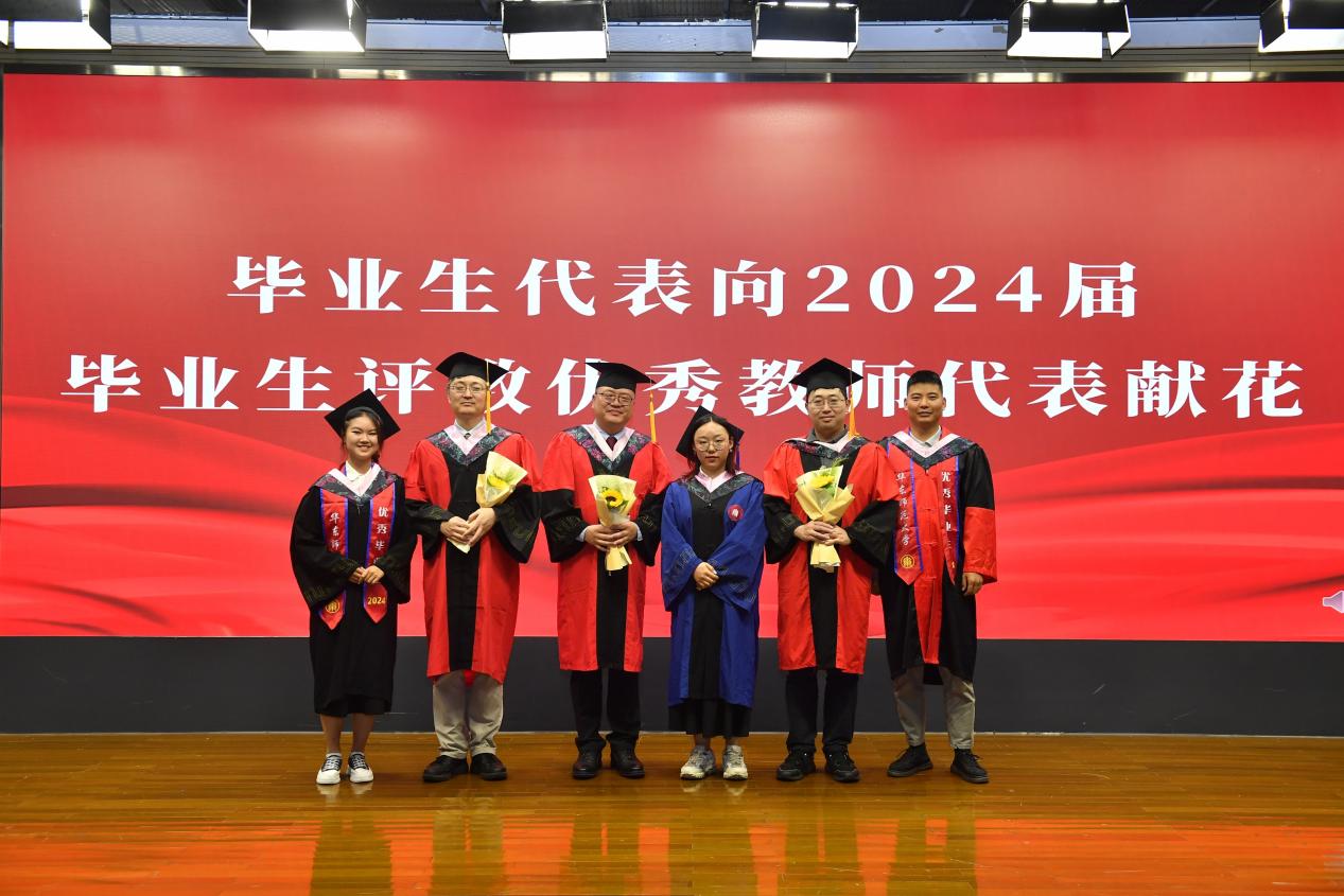 薪火相传开桃李,笔酣墨浓写春秋。与母校临别之际,毕业生代表2024届本科毕业生杨安妮、硕士毕业生胡爽爽、博士毕业生黄程伟为啪啪啦 2024届毕业生评教优秀教师代表啪啪啦 吕志峰教授、徐默凡教授和徐俪成副教授献花,感谢老师们为学生提灯引路、育梦成光。