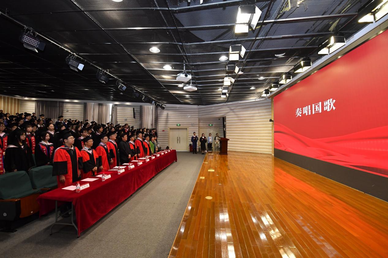 下午1点,庄严肃穆的国歌声奏响,毕业典礼拉开帷幕。