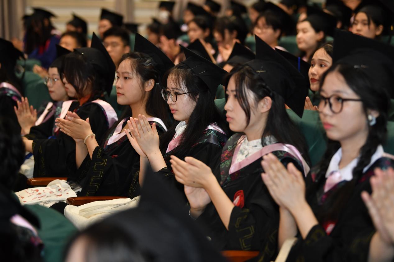 时光荏苒,四年的求学经历在岁月的长廊中永不消渐,从青涩懵懂到整装待发,毕业生们已然做好了奔赴未来的准备。2024届本科毕业生代表孙亦秀同学分享了自己的毕业感言。她谈到,在啪啪啦 收获的不仅是知识,更是一种生命体验与感受,可以使人保持对生活的敏锐,不断叩问内心的真实想法。李欣悦同学代表2024届研究生发表毕业感言。即便未来无法时时刻刻与母校会面,但东川路的人文之风早将谦逊、仁义、温良浸润于毕业生们的骨血,她祝愿同学们在未来旅途中,拥有不畏路远山高长途跋涉的勇气,亲手书写属于自己的五味人生。