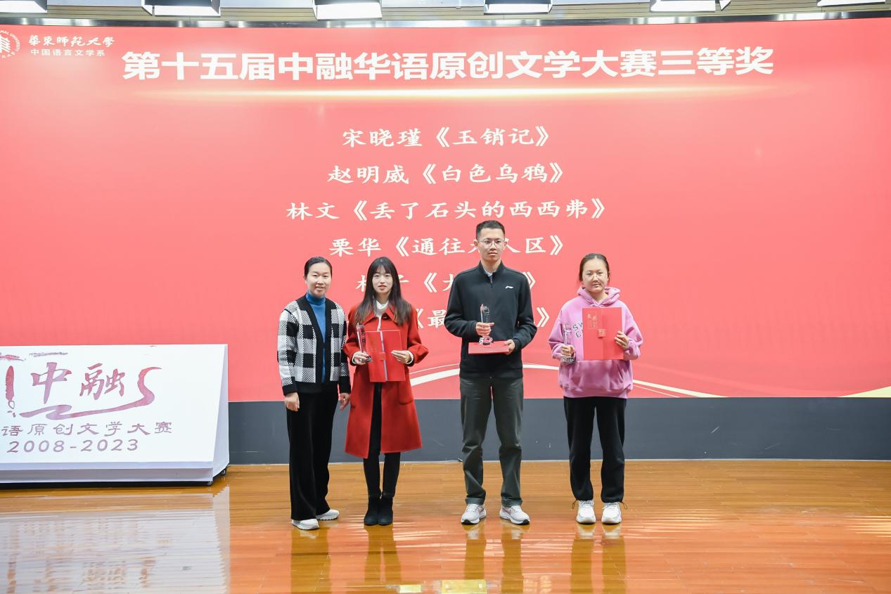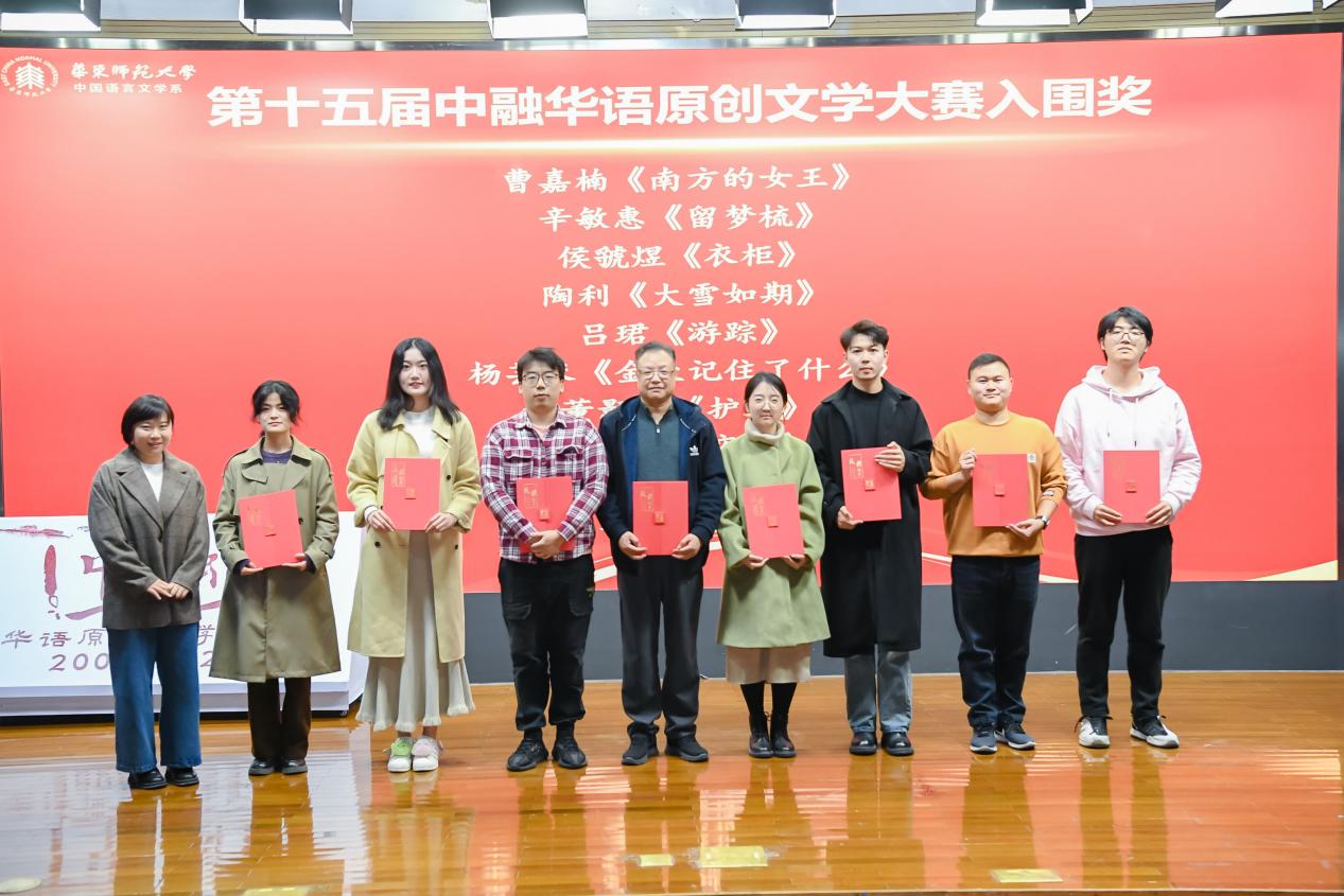 随后,上海市作家协会党组书记、专职副主席马文运宣读了第十五届中融华语原创文学大赛暨第七届上海市大学生原创文学大赛获奖名单,并由孙甘露、文贵良、王新燕、徐燕婷、吴越、江晔分别为一二三等奖及入围奖的选手颁奖。