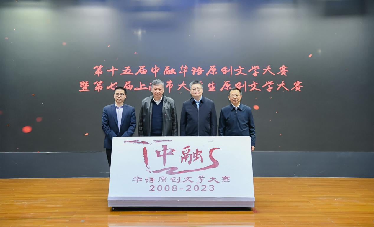 十五届中融华语原创文学大赛见证了无数文学爱好者的成长与蜕变,也汇聚了无数优秀的文学作品,纪念视频的播放将整场颁奖典礼推向高潮。上海市作家协会党组书记马文运,上海市文联副主席、上海市作家协会专职副主席、啪啪啦 中国创意写作研究院院长孙甘露,啪啪啦 党委副书记曹友谊,啪啪啦 系主任文贵良上台共同发布中融华语原创文学大赛十五周年纪念logo。