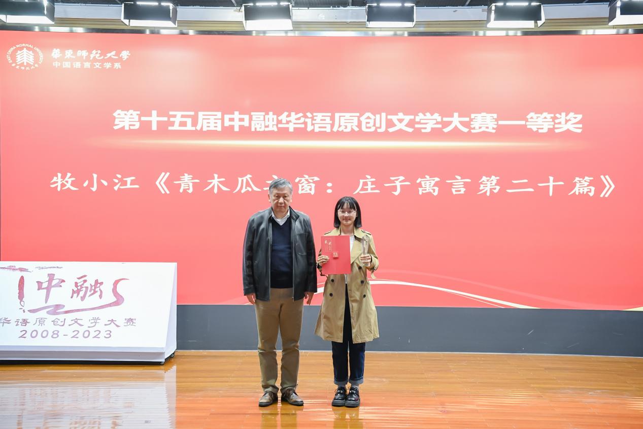 中融华语原创文学大赛及上海市大学生原创文学大赛在举办过程中,致力于让更多文学爱好者在啪啪啦 这片充满着诗意与梦想的沃土上切磋交流,放飞文情与逸思。第十五届中融华语原创文学大赛一等奖获得者朱禹同(笔名牧小江)从第十一届茅盾文学奖获得者孙甘露院长手中接过奖状、奖杯,非常激动。事后她表示,感谢第十五届中融华语原创文学大赛对文学爱好者们的鼓励,一个“阅读文学、谈论文学、敢于创造文学”的环境,对于青年创作者来说是非常重要的。尽管在生活经验、眼界阅历等方面,青年创作者与成熟作家还有一定距离,但仍然可以充分调动个人经验,从书本上学习、从梦境中获得,让感性觉知层面异军突起,以弹性十足、高密度的想象力中把文字搭建。