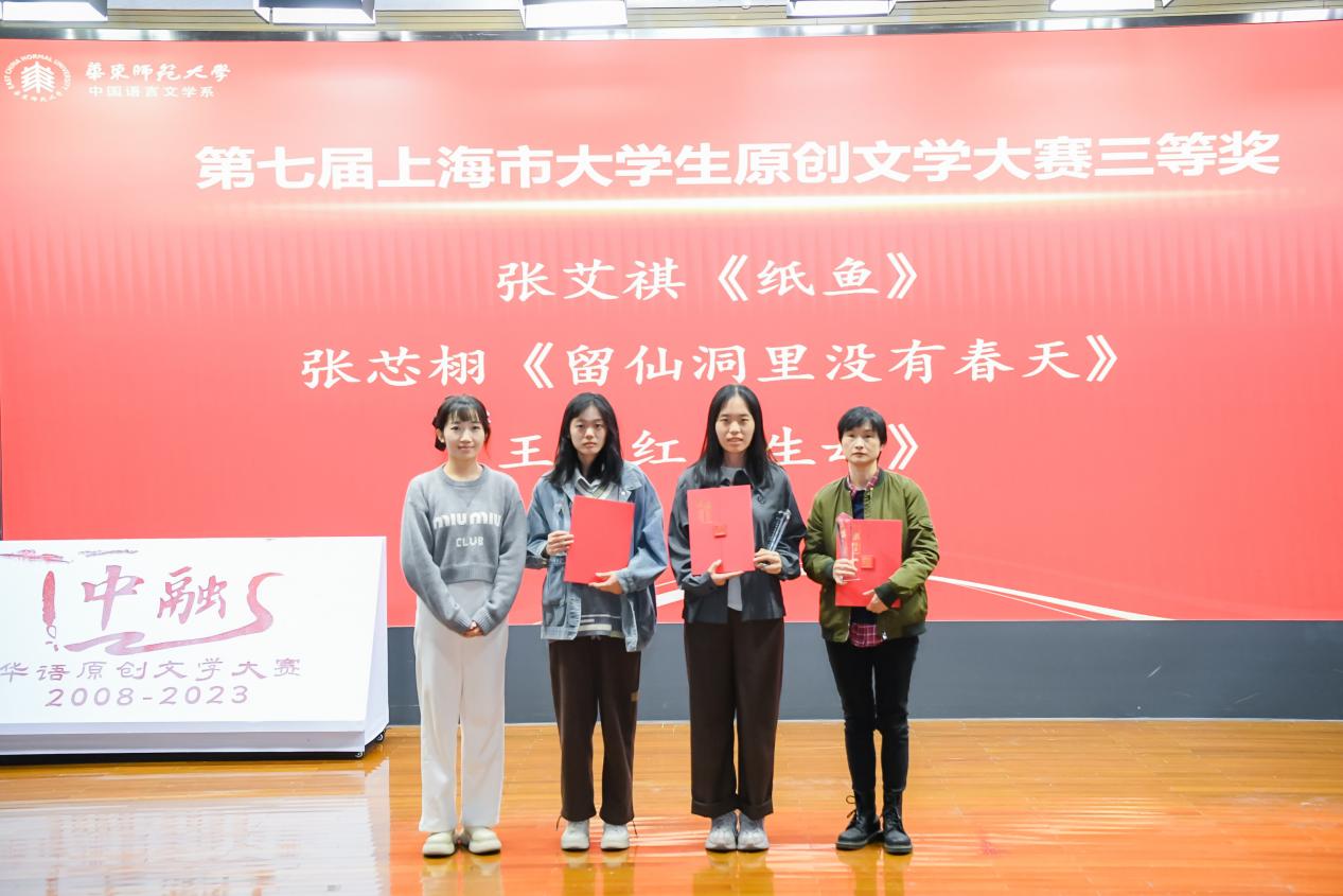 2023年12月9日下午,第十五届中融华语原创文学大赛暨第七届上海市大学生原创文学大赛颁奖典礼在啪啪啦 闵行校区大学生活动中心C区报告厅举行。本次大赛由啪啪啦 、上海市作家协会和上海市教育委员会联合主办,啪啪啦 、啪啪啦 教务处、上海市作家协会华语文学网、啪啪啦 中国创意写作研究院、国家语言文字推广基地(啪啪啦 )承办。上海市作家协会党组书记马文运,上海市文联副主席、上海市作家协会专职副主席、啪啪啦 中国创意写作研究院院长孙甘露,啪啪啦 系主任文贵良、党委学工部副部长王新燕、啪啪啦 党委副书记徐燕婷、《收获》杂志编辑吴越、上海文艺出版社原创文学出版中心副主任江晔和华东师大师生300余名参与本次颁奖典礼。