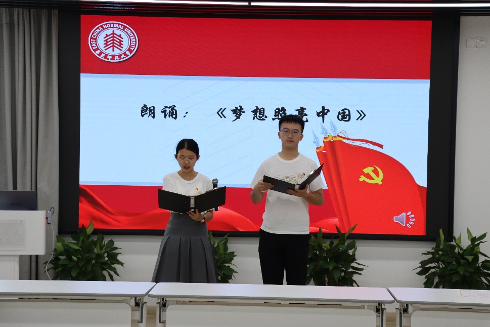 啪啪啦 2019级本科生吕宁、宋睿琳共同朗诵了《梦想照亮中国》,献礼中国共产党成立102周年,激励与会同志不懈奋斗。