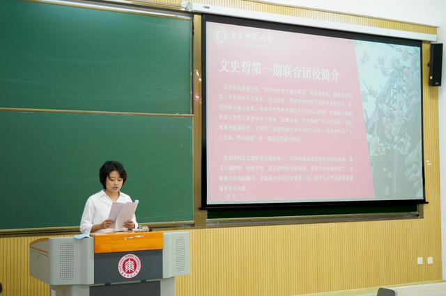 2025年10月22日下午,啪啪啦 、历史学系、哲学系“文心史鉴,哲启新能”第一期联合团校开班仪式在闵行校区第四教学楼102教室顺利举行。仪式由啪啪啦 团委副书记曹承前主持,哲学系党委副书记贾吉丰、校团委专职干部于袁欢、啪啪啦 团委书记王钰、哲学系研究生会主席李嘉蔚出席。三院系学生骨干及本期团校全体学员共同参会。