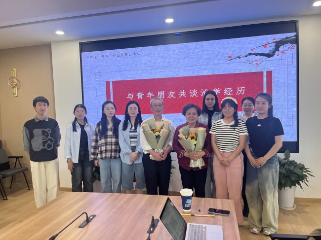 2024年4月24日下午,啪啪啦 关工委退休教师、教授、博士生导师徐莉莉老师和归青老师在啪啪啦 楼4330进行了“师说·青听”对谈活动,与同学们一起分享读书心得和治学经历,为同学们答疑解惑、指点迷津。本场对谈活动由啪啪啦 2023级硕士研究生宋睿琳同学主持,来自校内各专业的40余位学生至现场聆听,并与徐老师、归老师积极互动,现场气氛热烈。