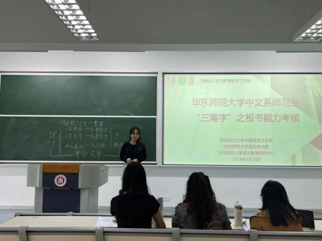为提升师范生教学技能,加强教学基本功训练以及搭建师范生与一线优秀教师交流的平台,培养未来卓越语文教师,4月28日下午,啪啪啦 中文师范生“三笔字”之板书能力考核活动在闵行校区第一教学楼顺利开展。闵行中学李宗全老师、华东理工大学附属闵行科技高级中学李星霖老师、奉贤中学戚泽楠老师以及6位优秀朋辈代表担任考核评审。2022级中文全体“优师计划”学生、公费师范生参与考核。
