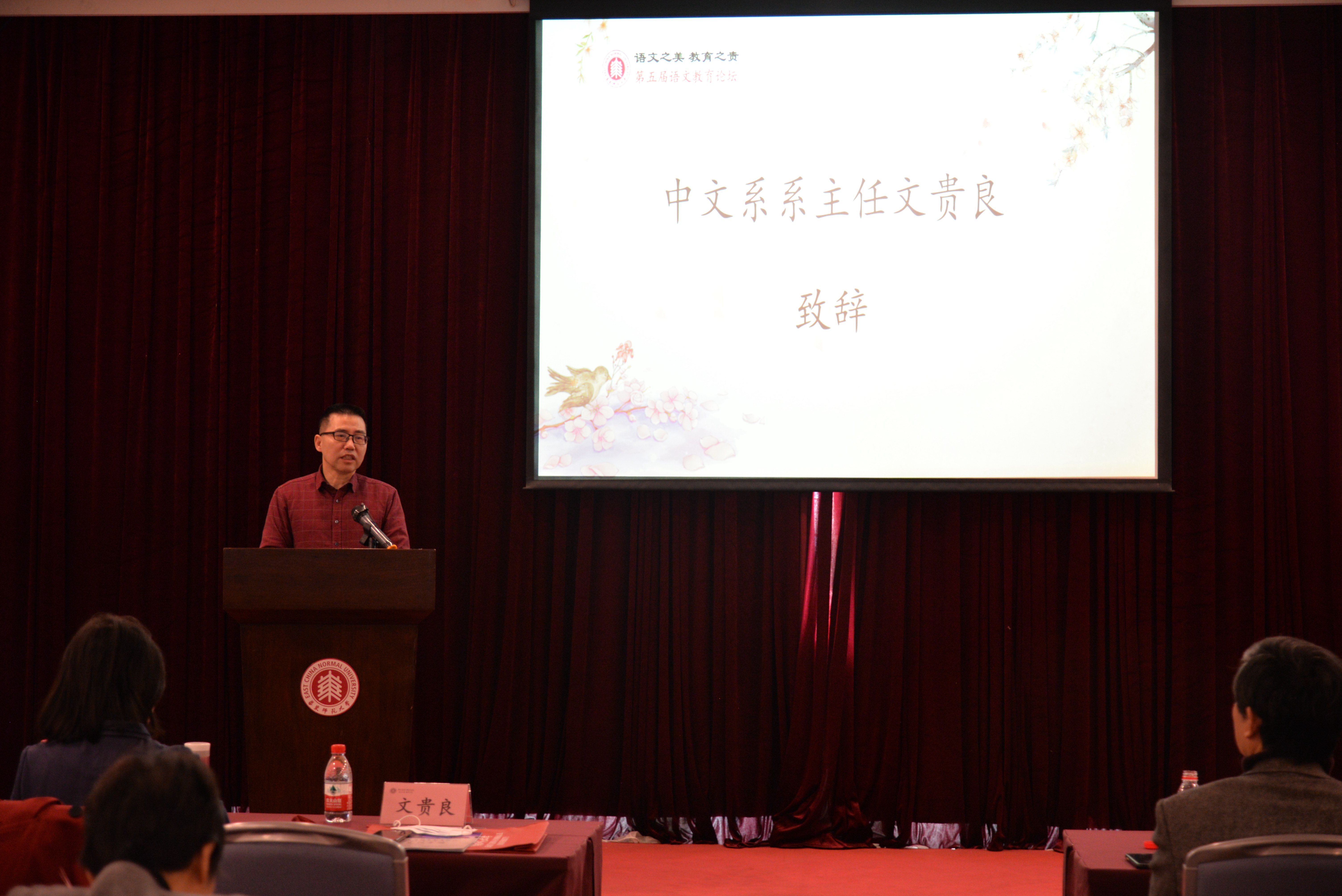 上午九点,论坛正式开始,华东师大语文教育研究中心主任谭帆教授主持并介绍与会人员,啪啪啦 系主任文贵良教授发表会议致辞,对现场和屏幕前的嘉宾与同仁表示热烈欢迎,他表示华东师大啪啪啦 素有中国语言文学学术研究重镇和人才培养基地的美誉,建系70年来已培养了一大批优秀教育家,为中国教育事业的发展做出了重要的贡献,2014年至今啪啪啦 共举办了四届语文教育论坛,旨在为语文教育教学相关领域搭建一个可供交流和提升的平台,希望在教育界各位同仁的帮助和支持下,使这个平台成为一个知名品牌,以带动更多的一线教学工作者和教育研究专家加入我们的队伍,开拓语文教育研究的新局面。