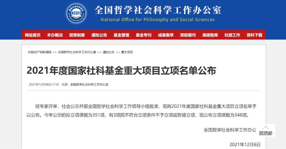 12月6日,全国哲学社会科学工作办公室正式公布2021年度国家社科基金重大项目立项名单。