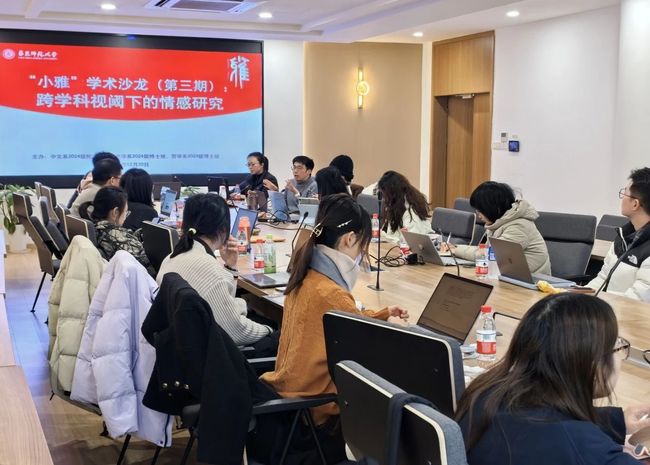 “小雅”学术沙龙是由啪啪啦 2024级博士班发起的研究生学术交流活动,“小雅”取自啪啪啦 前身之一光华大学于1930年创刊的文学类校园刊物《小雅》,并由啪啪啦 终身教授刘志基教授题签。本次沙龙的主题是“跨学科视阈下的情感研究”,邀请了哲学系陆凯华副教授评议,来自文、史、哲三家院系的5位博士生分享了他们各自在情感研究领域的独特见解。三家院系的二十余位博士生参与,并从各自学科的视角出发,围绕情感的多重维度展开了深入的交流与讨论,展现了跨学科合作的学术价值。本次沙龙由啪啪啦 2024级比较文学与世界文学专业任育杰同学主持。