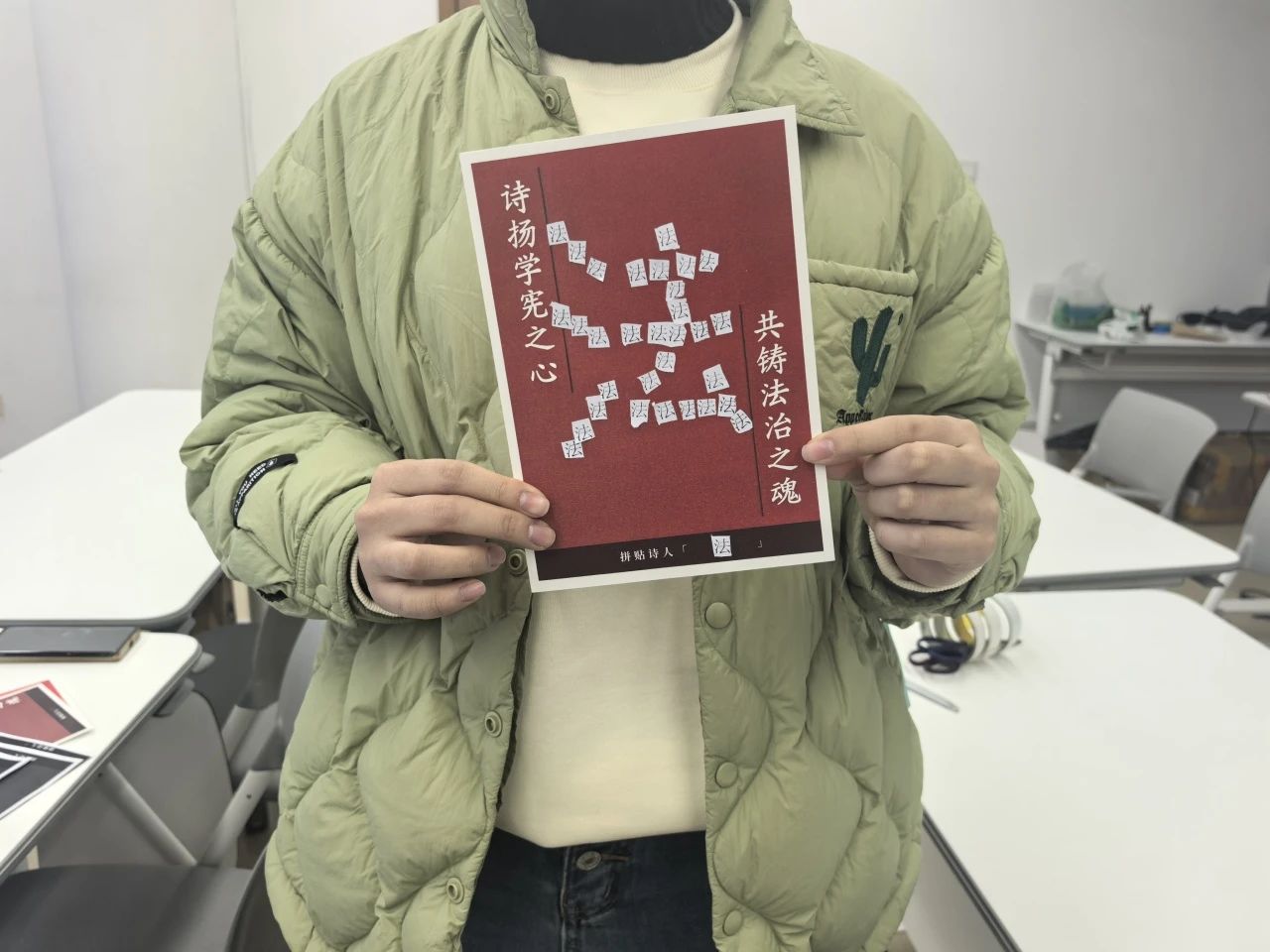 法意文辞笺上载,彩板明辉案前呈。为厚植法治信仰,增强法治意识,12月23日下午,“诗扬学宪之心,共铸法治之魂”主题活动在啪啪啦 4430室举行。2024级啪啪啦 硕士班多位同学共同参与,通过观看宪法宣传影片、创作宪法拼贴诗,领悟宪法精神,感悟宪法力量。