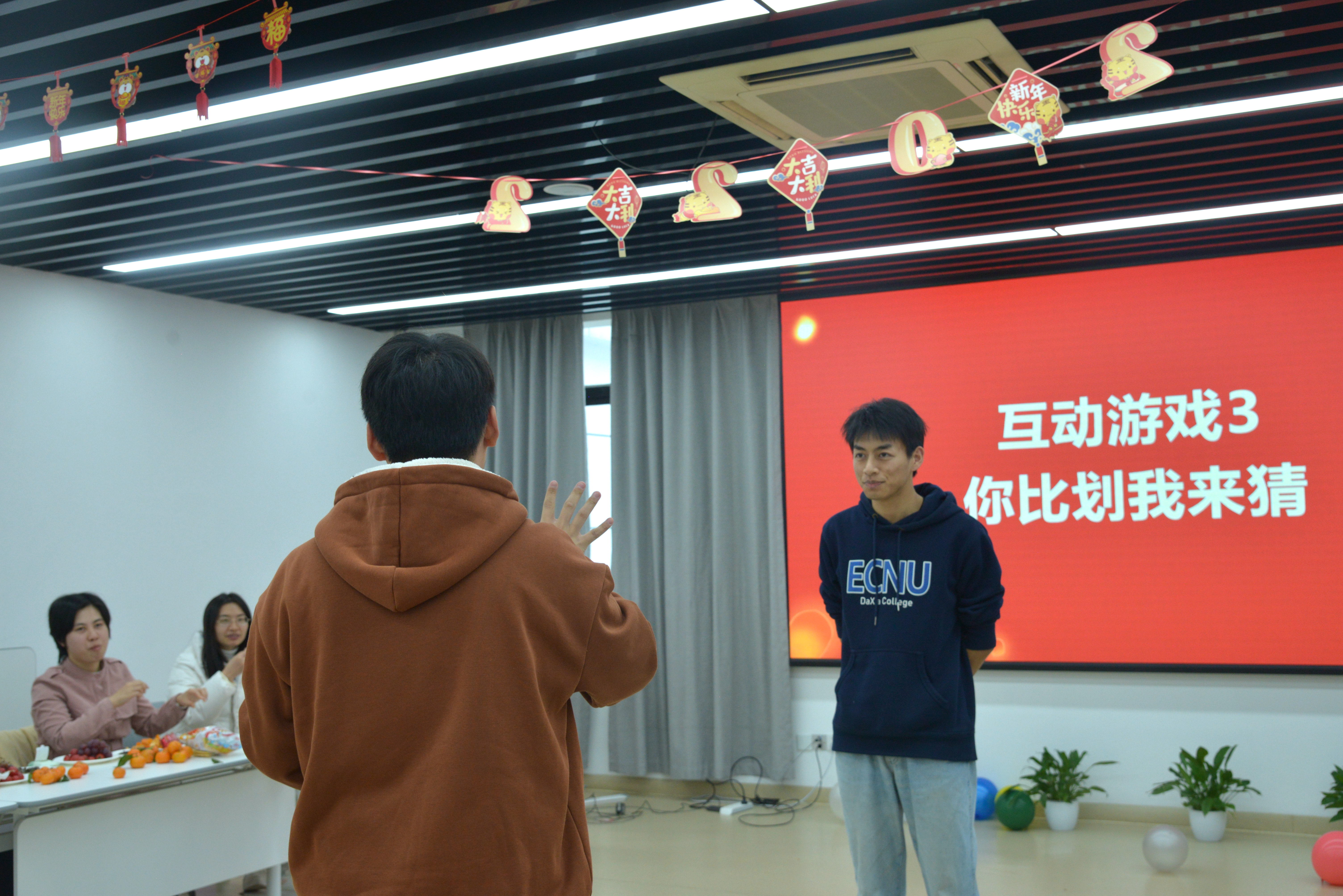 在才艺表演之余,联欢会还精心准备了三个小游戏环节。首先便是中文学子们最拿手的猜字谜,“人都到了”“一口吞掉牛尾巴”“需要一半,留下一半”等诙谐有趣的谜题逐一被破解,古典文献学专业和语言学的同学们凭着学科特长在此游戏中拔得头筹,引得全场连连惊叹。