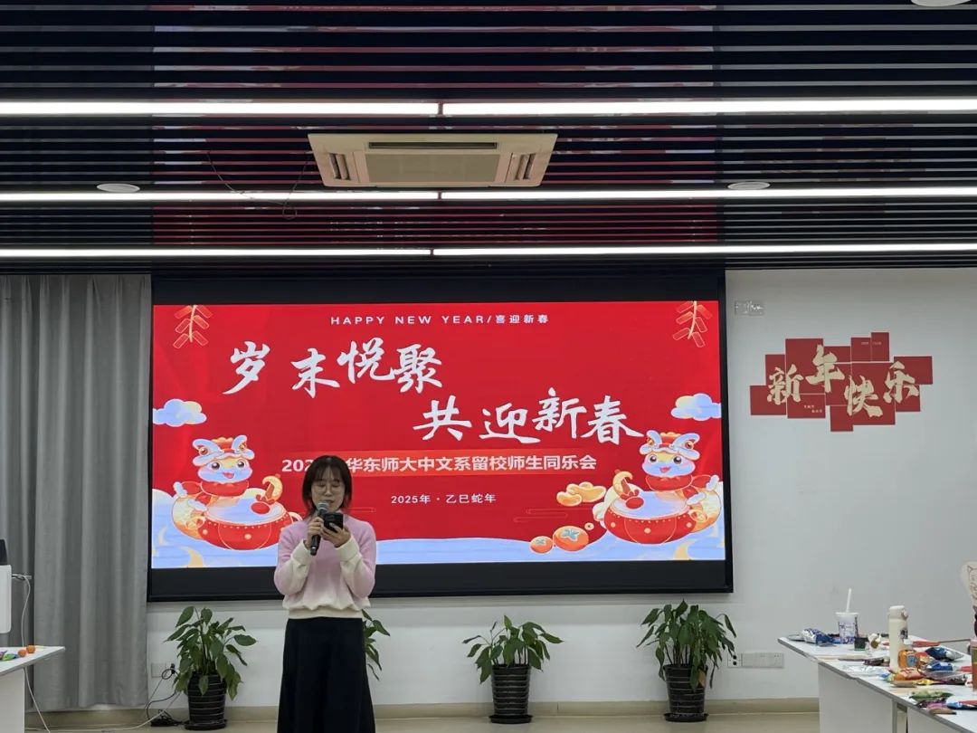 为进一步增进师生情谊,丰富留校学生文化生活,感受新年团圆氛围,1月17日晚,2025年啪啪啦 留校师生同乐会在文史哲楼4430报告厅顺利举办。啪啪啦 党委副书记徐燕婷、副系主任汤拥华,博士生辅导员方中书、张青、张潇萌,研究生辅导员焦艳,本科生辅导员张雅薇与假期留校的20余名本、硕、博学生欢聚一堂,畅聊旧年旧事,共话新春新程。
