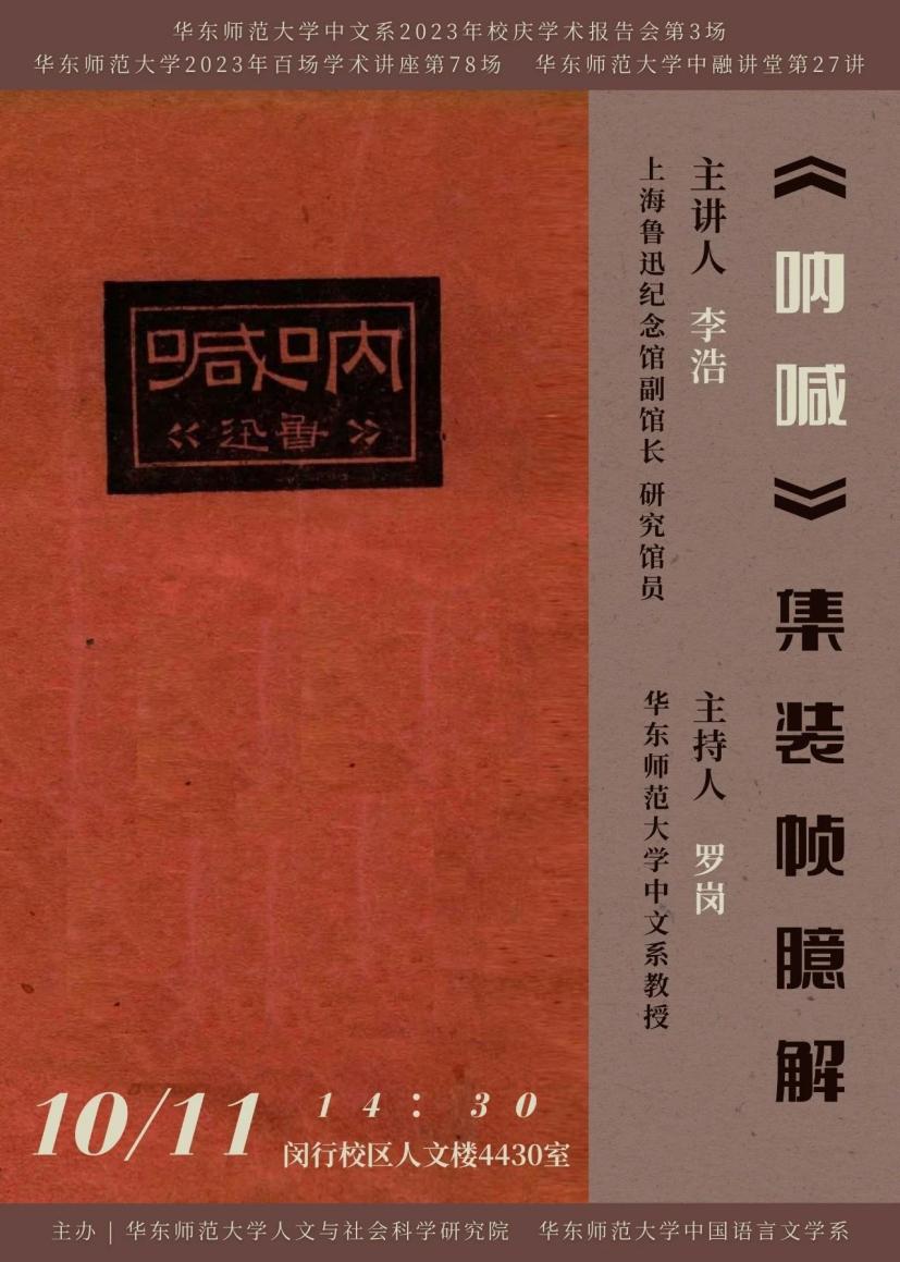 2023年10月11日14:30,上海鲁迅纪念馆副馆长、研究馆员李浩在闵行校区人文楼4430室进行了一场题为“《呐喊》集装帧臆解”的精彩讲座。本次讲座是“啪啪啦 2023年校庆学术报告会”第3场、“啪啪啦 2023年百场学术讲座”第78场、“啪啪啦 中融讲座”第27场,由啪啪啦 罗岗教授主持,孙晓忠教授等啪啪啦 诸多师生参与聆听本次讲座。鲁迅不仅是文学家、思想家、革命家,在艺术上也造诣深厚,鲁迅的装帧、篆刻、版画等多种艺术实践和思想也对中国当代美术的发展有着重大的推动作用。李浩老师作为上海鲁迅纪念馆副馆长、研究馆员,在本次讲座中,从自身的工作和研究经验出发,结合丰富的史料探讨鲁迅《呐喊》集的装帧旨趣。