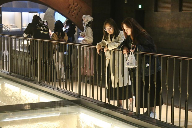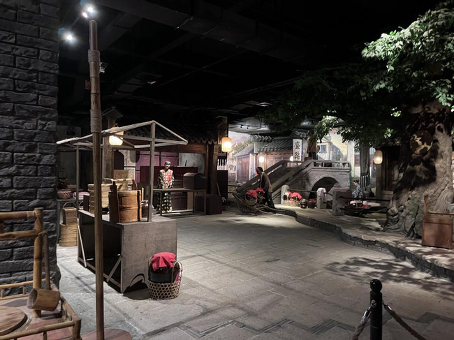 同学们首先参观了广富林文化展示馆。文化展示馆的建筑设计别具一格,展览均布置在水下,其以“寻根之旅”为理念,通过时间线索,还原呈现了远古印记、先民活动、城邑形成、县府兴起、城市发展系列历史面貌,学生跟随引导,身临其境地感受着上海文化的起源与发展,特别是近代上海城市的兴起,从街道到临街店铺,从照相馆到剧院,充分展示着上海的独特韵味。