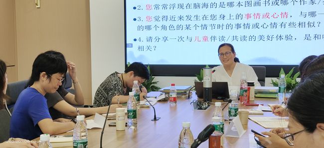7月9日的研修主题围绕如何将绘本运用幼儿园课程设计展开:百千幼儿阅读研究院院长孙莉莉老师带来专题讲座“幼儿园课程编制的底层逻辑”,啪啪啦 闵行永德实验幼儿园园长胡晓月老师带领开展经典图画书导读工作坊。