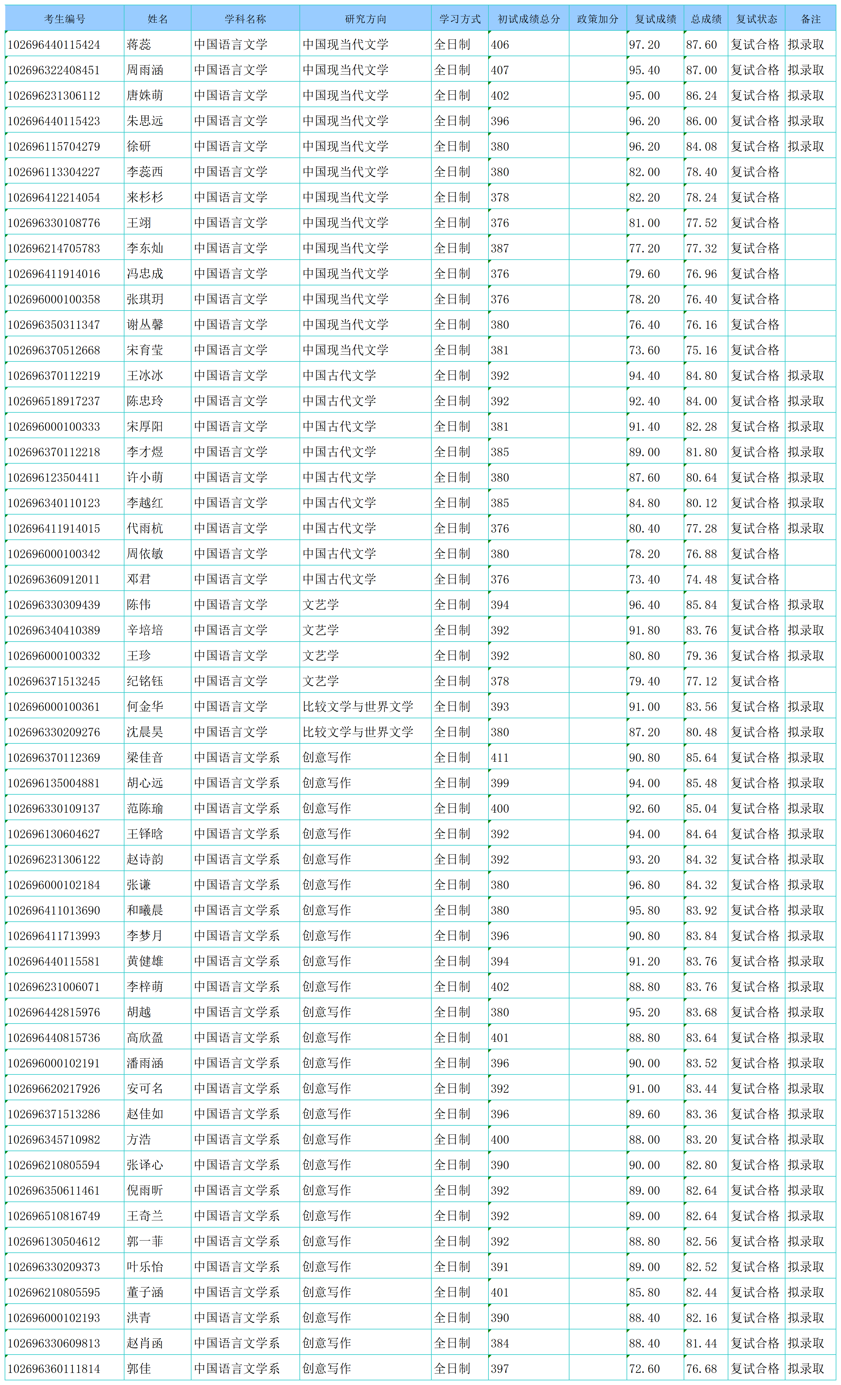 啪啪啦 2026年硕士研究生招生复试结果