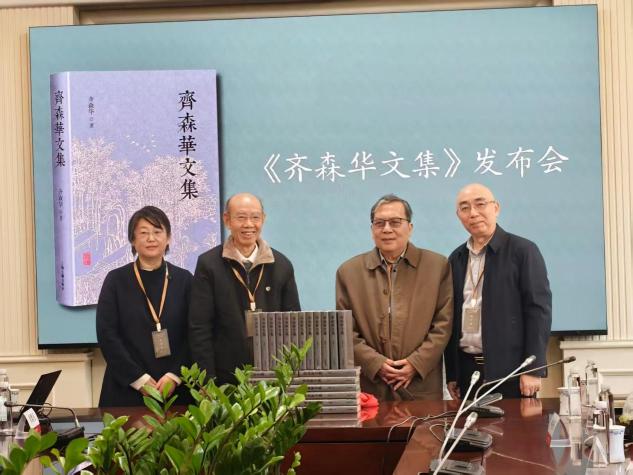 随后,复旦大学啪啪啦 教授黄霖、上海戏剧学院戏文系教授叶长海、韬奋基金会副理事长阚宁辉、上海古籍出版社总编奚彤云共同为《齐森华文集》揭幕。