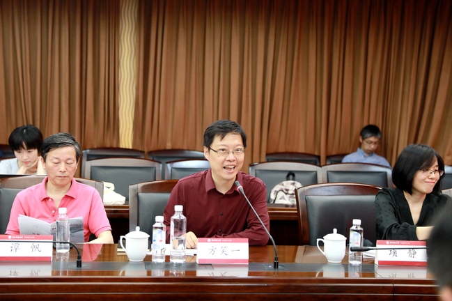接下来,中国创意写作研究院副院长黄平教授汇报“孙甘露名师工作室”及啪啪啦 -分众传媒“未来文学家”大奖筹备情况。黄平教授谈到,孙甘露院长领衔的“上海书写”工作室高度契合创意写作专业,既扎根高校又面向文学现场。中国创意写作研究院将围绕“孙甘露名师工作室”这一平台,推出一批教学与创造成果,探索适合中国本土实际的创意写作专业发展道路。而关于“未来文学家”奖项,黄平教授从参评条件、评审流程、奖励办法等方面一一进行介绍。