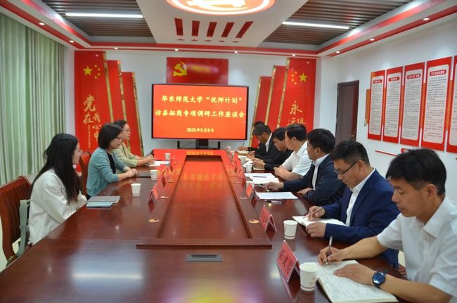 虞城县第一高级中学党委书记余坤向华东师大一行介绍学校发展情况,他指出,学校秉持“立德树人、全面发展”的教育理念,注重教学质量提升与学生个性化培养,近年来,学校在高考成绩、学科竞赛、素质教育等方面成果显著。在河南省2025届公费师范生优师计划毕业生双选会上,已有5名来自我校的“优师计划”优秀毕业生与该校签署就业意向协议,为学校教师队伍增添了新生力量。陈富磊对虞城县教育发展情况进行了介绍,并表达了未来与啪啪啦 深化合作、推动教育发展的意向。徐燕婷教授就我校在河南省的“优师计划”招生政策、实习和就业落实情况做报告。张潇萌就我校总体情况和在豫招生政策做介绍。双方围绕建立师范生实习基地、推进2026届优师计划毕业生就业等议题开展讨论。