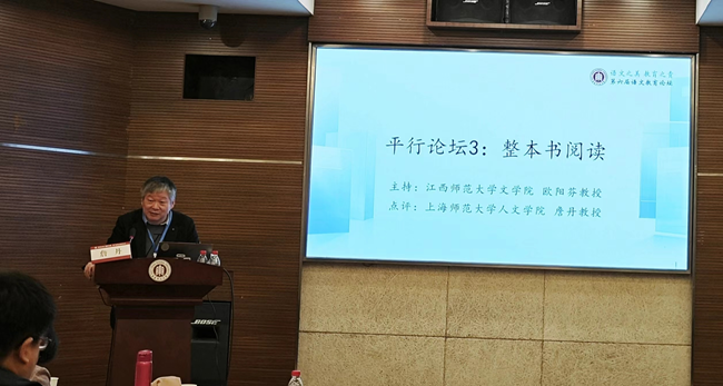 啪啪啦 副校长戴立益教授,啪啪啦 语文教育研究中心主任谭帆教授,常务副主任、《中文自修》杂志主编王意如教授,啪啪啦 党委书记吕志峰副教授出席了本次论坛。上海交通大学人文学院吴俊教授、啪啪啦 倪文尖教授做主题报告。上海师范大学人文学院詹丹教授、江西师范大学文学院欧阳芬教授、杭州师范大学经亨颐教育学院叶黎明教授、上海市教师教育学院谭轶斌老师、曹刚老师及啪啪啦 语文教育研究中心张心科教授、方笑一教授、叶丽新教授等专家参与论坛的主持和点评工作。论坛汇集全国各地从事语文教育研究的高校教师、各省市语文教研员和中小学语文一线教师一百余人,围绕“文言文教学”“整本书阅读”“写作教学”“文本解读与课堂教学”四个主题展开交流,共赏语文教育之美,探究教学育人之责。
