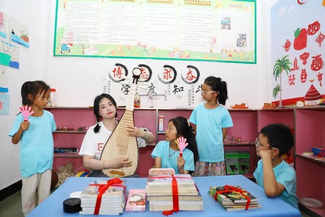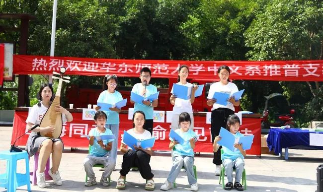 当天,啪啪啦 “山海同音,‘渝’见丽娃”推普支教队的志愿者和石笋山村的小朋友共同排演古诗诵读节目,小朋友们以独诵、轮流朗诵和齐声合诵等多种形式进行经典诗歌朗诵表演,啪啪啦 支教队刘楚戈以琵琶演奏中国风曲目伴奏,通过“民族乐器+古典诗歌”双声共振的新模式让优秀文化进乡间。