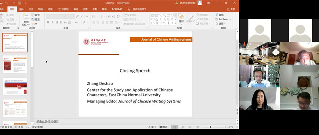在闭幕式上,Journal of Chinese Writing Systems(《中国文字》)执行主编张德劭副教授对各位学者的发言进行总结,并对与会学者的精彩发言和热情参与表示感谢。本次论坛涉及埃及文、楔形文字、古英文、古汉字中的甲骨文、金文、简帛文字、隶书、古壮字等多种语言和文字,涉及语言学、文字学、计算机等多个学科。讨论范围从深度和广度上来说,兼而有之。汉古文字是中国的传统学科,拥有悠久的历史。中国的文字种类多样,是世界文字的重要组成部分。中国有学者研究国外的文字,国外学者研究中国的文字。中外文字学家就埃及文字,楔形文字等不同议题展开了热烈的讨论,使不同文字之间建立了联系,是非常有意义的尝试。张德劭在总结中还表示,期待今后创造更多的机会在不同文字、文明之间展开深入交流与合作。最后,张德劭副教授还介绍了由啪啪啦 中国文字研究与应用中心主办的国际期刊Journal of Chinese Writing Systems(《中国文字》)的基本情况,表示该期刊将努力成为构建中西方文字之间的桥梁,呈现出丰富多样的世界文字。