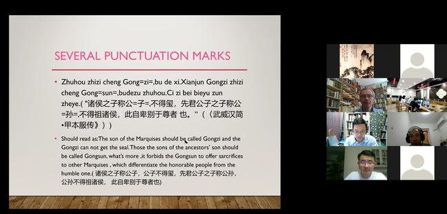来自啪啪啦 的汤志彪副教授以“The importance of the punctuation marks in the Chinese ancient document unearthed”为题,介绍了出土古文献中标点符号类型以及重要意义。