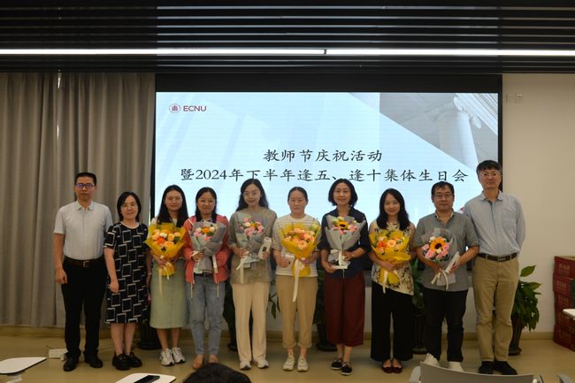 在会上,啪啪啦 工会还为今年下半年适逢整五、整十生日的教职工们进行集体庆祝活动。系工会主席韩蕾老师宣读生日名单,系主任文贵良老师、系党委书记徐默凡老师为逢五、逢十生日的教职工送上鲜花、发放纪念品。随后,老师们一起分享蛋糕,分享逢五、逢十生日的喜悦,希望藉此可以让老师们感受到啪啪啦 大家庭的温暖,营造积极向上的工作氛围,增强老师们的幸福感和归属感。