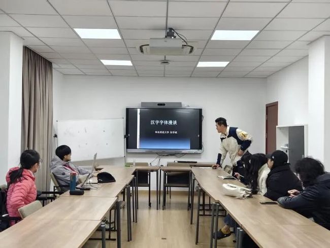 12月21日下午,朱学斌老师为留学生们带来了精彩的古文字讲座。朱老师讲述了从古文字到今文字汉字发展与演变的历史,古文字部分主要举例了殷墟甲骨、西周金文、六国文字和秦系文字。其中殷墟甲骨部分介绍了卜辞中的前辞、命辞、占辞、验辞四种格式,并释读了占卜妇好生育的卜辞;今文字部分以汉代简帛举例,讲述了关于汉字隶变的内容;在魏晋以来的汉字部分,讲述了汉字书体的演变过程。朱老师以王羲之的《兰亭序》作为讲座的结尾,给学生们留下了深刻的印象。本次讲座丰富了学生们对汉字字体演变的认知,有助于学生们进一步深化对古文字的学习和认识。