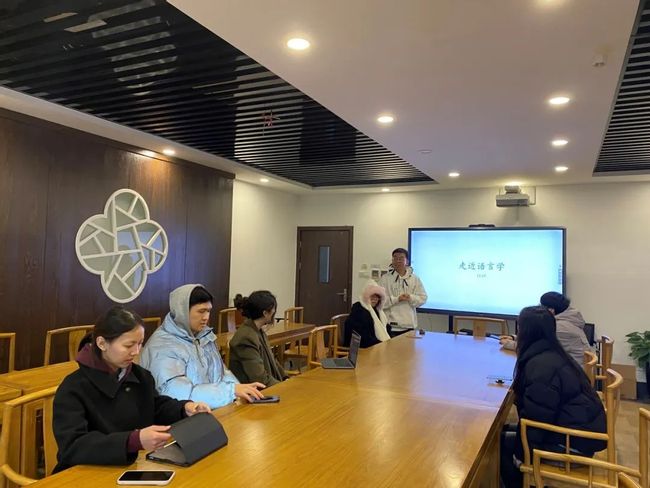 12月15日下午,金延伟老师带领学生探索语言学奥秘。金老师以妙趣横生的故事,结合语言学趣味视频,向同学展示了世界上各种语言的奇妙构词。读书会最后,金老师总结道:“语言是一种本能,我们大脑里应该有处理语言规则的部位或者某些神经元特定连接的方式。我们所看到的语言的面貌是我们心智的产物。”本次讲座让学生们更加直观地感受到语言的独特魅力,激发了同学们对语言的学习兴趣。