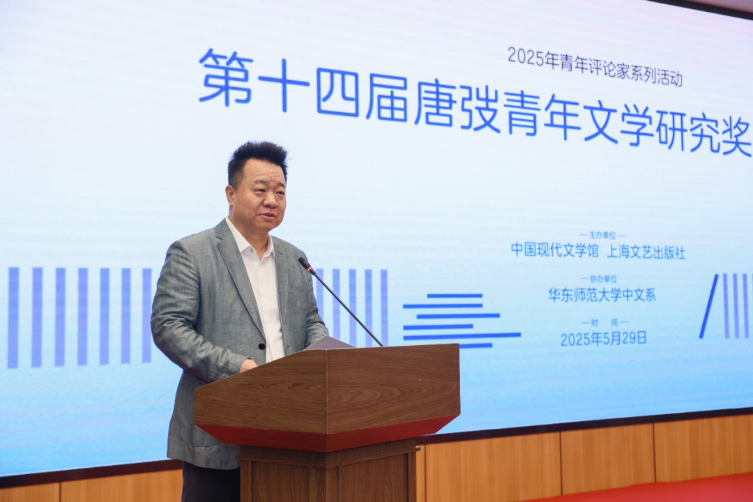 邱华栋在致辞中对获得本届唐弢青年文学研究奖的青年学者表示热烈祝贺,对上海方面提供的支持与协助表示衷心感谢。他谈到,20多年来,唐弢青年文学研究奖的获奖作品涵盖了中国现当代文学的各个领域,体现了青年学者敏锐的学术洞察力和开拓进取的创新精神,见证了青年学人的成长与进步,为文学研究新力量提供了展示才华、交流思想的重要平台。对于青年学者来说,这远非一项荣誉称号,是激励大家在学术研究征程上砥砺前行、披荆斩棘的重要坐标,承载着广大学界对青年人志业理想、治学态度、耕耘付出的嘉许与认可,是青年学者在探索新知的道路上自我校准的学术标尺。获得本届唐弢青年文学研究奖的5篇作品,涵盖文学史研究、经典再阐释、新时代文学批评等方面,剖析深刻、观点新颖,他们与往届获奖学者一样,是新时代青年学者中的佼佼者,是中国文学事业生生不息的力量源泉。