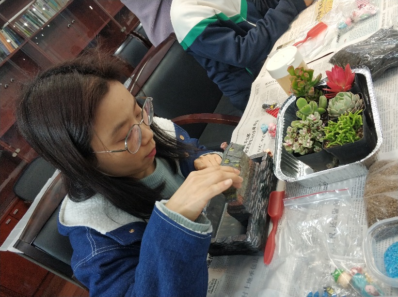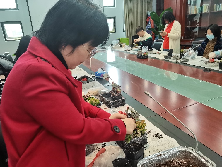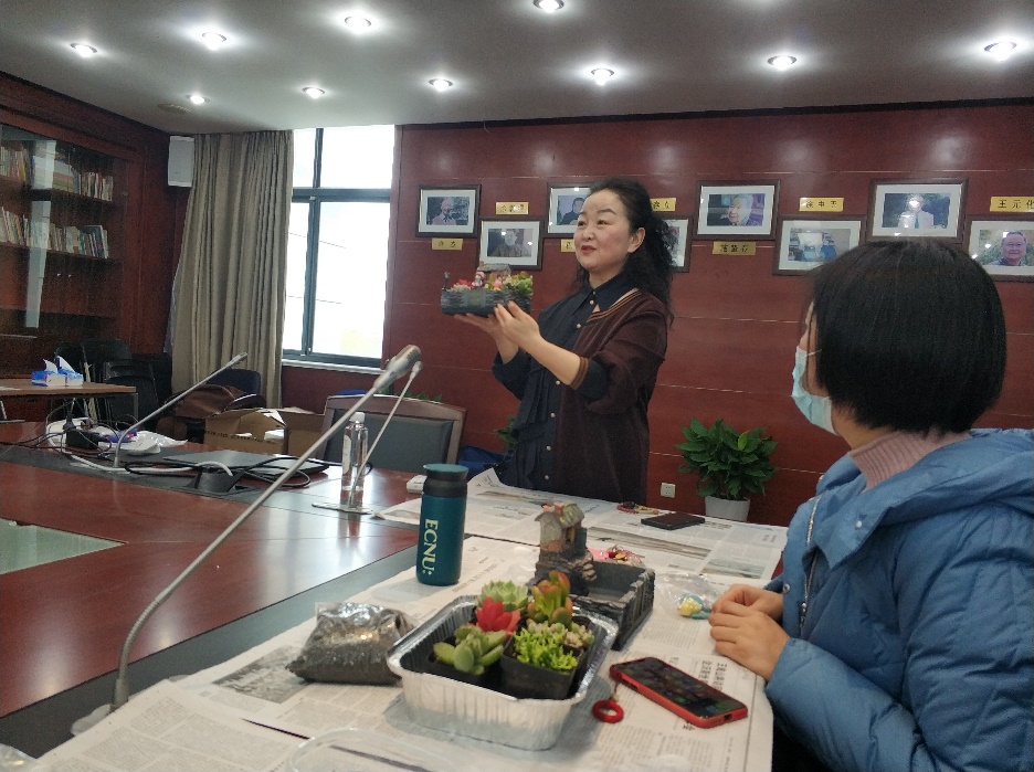 初春时节,乍暖还寒。为庆祝“三八”国际劳动妇女节,彰显啪啪啦 传统人文关怀,提高女教职工的生活品质,啪啪啦 工会、青年教师联谊会、女教师联谊会于3月24日下午13:00在闵行人文楼4330特藏室开展DIY多肉植物栽培活动。活动邀请到上海彤岩文化传播有限公司的彭世红老师现场指导,介绍、讲解多肉植物相关知识,啪啪啦 青年教职工积极响应和参与,共享一段动脑动手的愉悦时光。