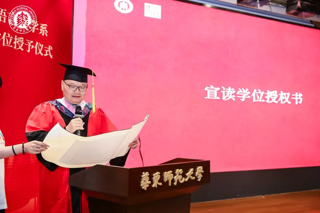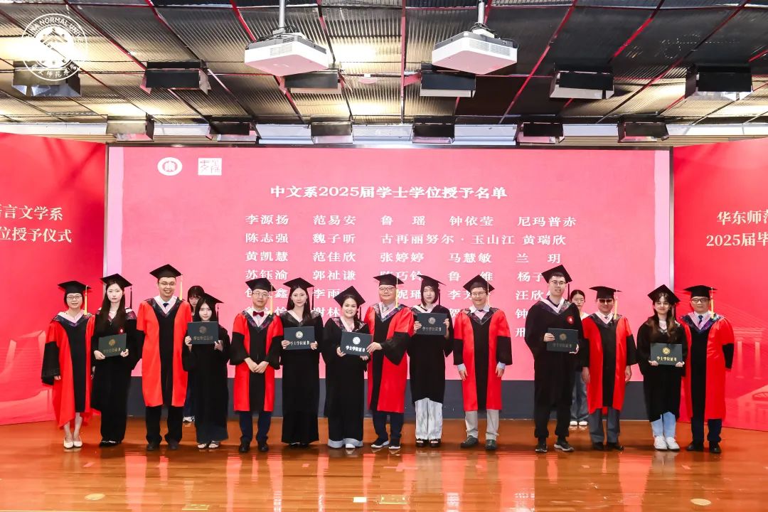 随后,啪啪啦 系主任罗岗教授宣读学位授予名单,导师们为毕业生逐一拨穗正冠、颁发学位证书。在场师生共同见证2025届同学学业圆满完成。