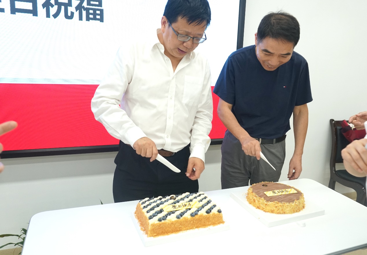 文艺学教研室的朱志荣教授、古代汉语教研室的潘玉坤教授,作为今天生日会的代表,在大家期待的目光中,为大家切开蛋糕,并与在座的各位老师一起分享这份甜蜜、喜悦与幸福。