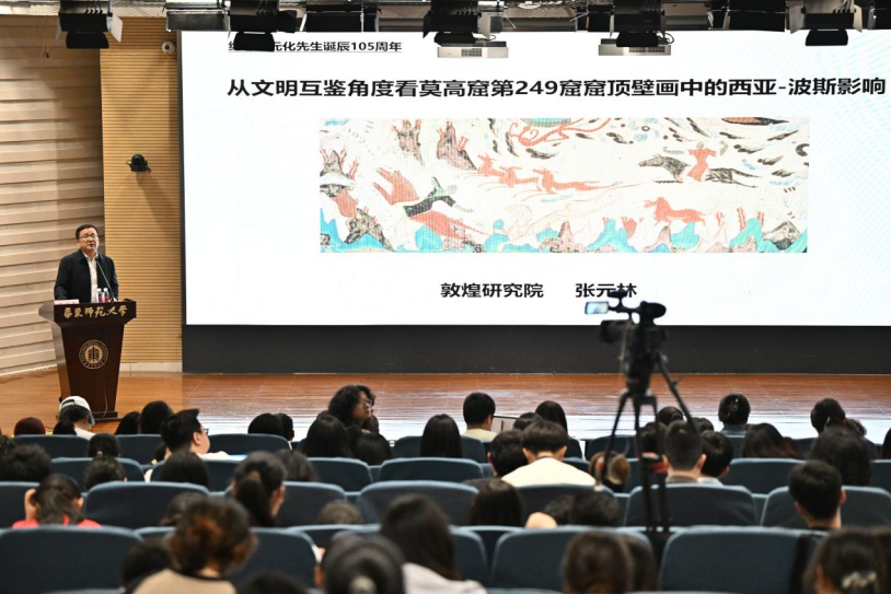 2025年4月11日下午,“纪念王元化先生诞辰105周年”系列讲座第一讲在闵行校区学生之家报告厅成功举办。本次讲座由敦煌研究院副院长张元林教授主讲,主题为“从文明互鉴角度看:莫高窟第249窟窟顶壁画中的西亚-波斯影响”,啪啪啦 教授、王元化学馆馆长方笑一教授主持讲座。