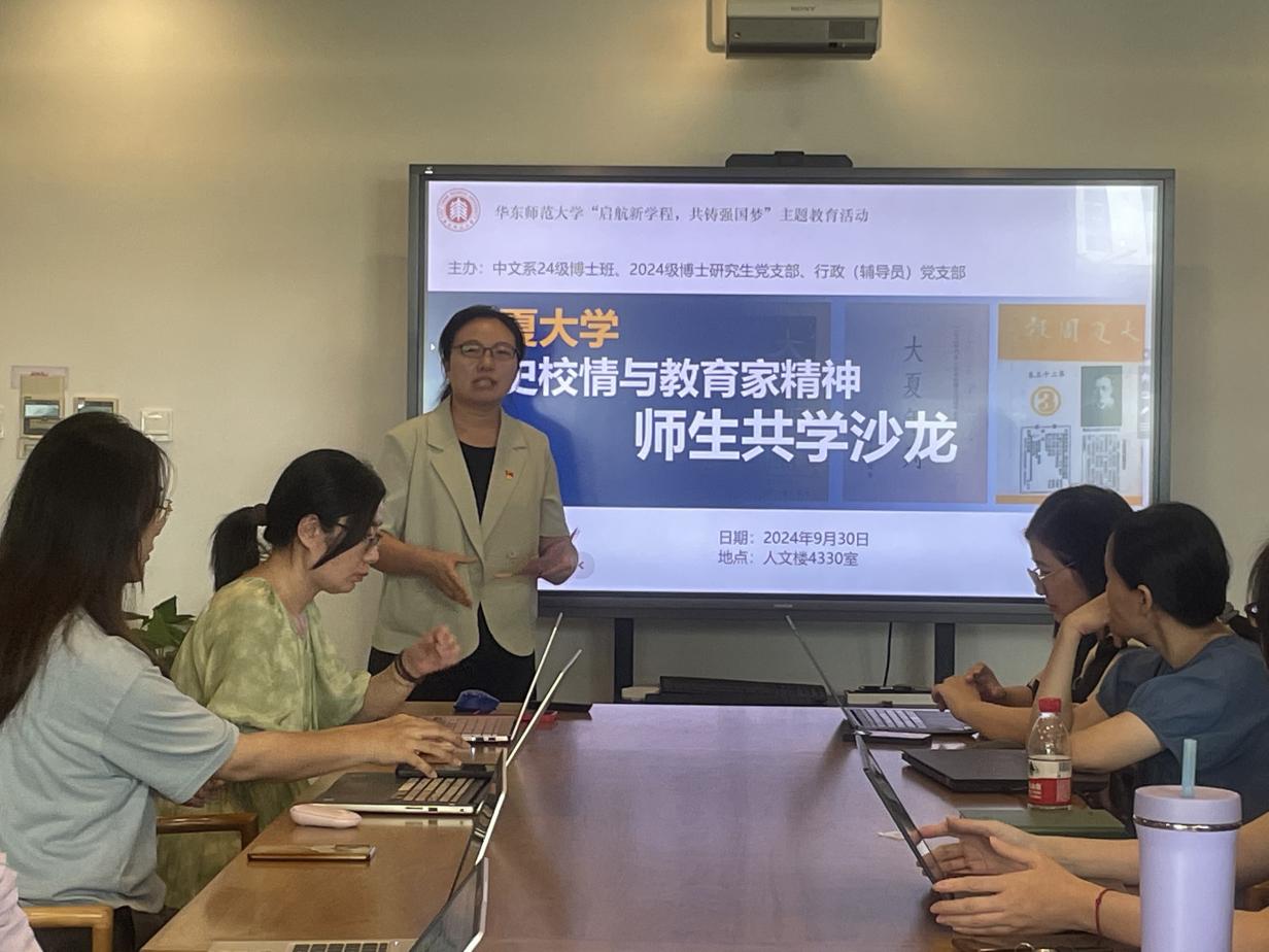 为深入贯彻全国教育大会精神,探索教育家精神的内涵实质,加强师生党支部的互融共建,2024年9月30日,啪啪啦 行政(辅导员)党支部与啪啪啦 2024级博士研究生党支部在人文楼4108会议室联合开展“弘扬教育家精神 共筑教育强国梦”主题党日活动。啪啪啦 党委副书记、行政(辅导员)党支部书记徐燕婷,系办公室主任曹姗姗,行政(辅导员)党支部吴晗、张潇萌、方中书、焦艳、杨芳、叶杨莉、郑邵琳等教职工党员,以及2024级博士研究生党支部全体党员、入党积极分子参加,活动还邀请了2024级博士班部分团员参会。活动由2024级博士研究生党支部书记田丽媛主持。