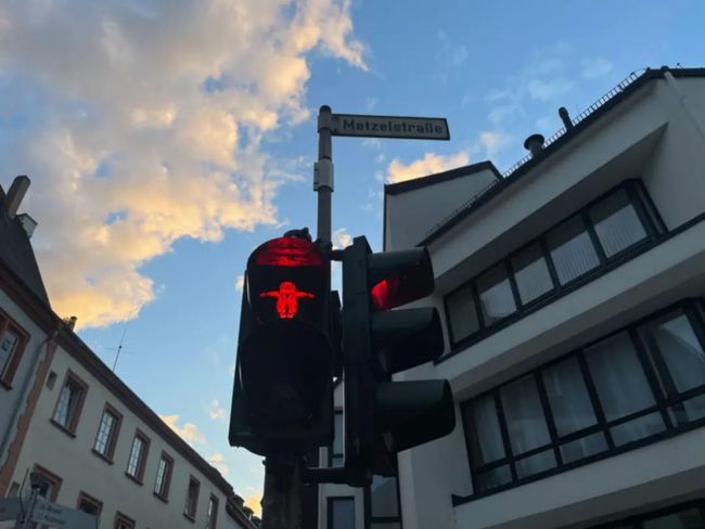 特里尔街道上以马克思形象设计的红绿灯