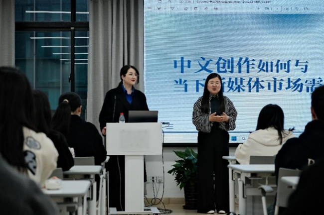 姜晓玉指出,我们能写的内容远超想象。完成各种题材的写作,前期需要审题,明确客户痛点和痒点,一一对标分析竞品;写作过程中需要进行行业调研并持续提升团队核心竞争力;完成写作后还需要进行复盘以降本增效,同时要大胆借助AI前沿工具辅助写作。“创意写作”的“创意”不止在于写法创新,还在于文体创新、用法创新。同学们需要从听、说、读、写四个方面练好扎实的基本功,广泛涉猎,善于观察,勤于思考,才能敏锐捕捉行业热点,更好适应新媒体写作市场。