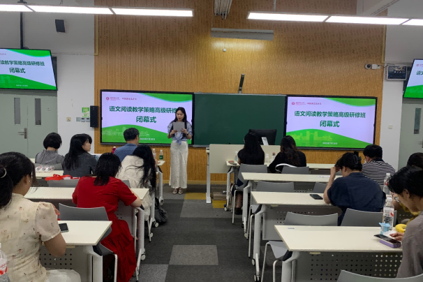 结业仪式由研修班班主任张潇萌老师主持,徐默凡教授为本次研修作总结讲话。学员代表、来自啪啪啦 江阴实验学校的顾呈熙老师和华东师大二附中附属初中的戴嘉禾老师表达了对五天学习过程的留恋、对教学与组织质量的肯定。本次语文阅读教学策略高级研修班拓展了一线教师对语文教育的认识,期待参培老师们继续深耕不辍,共同创造美好的语文课堂。