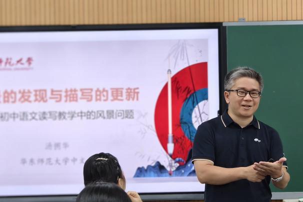 7月14日上午,研修活动在闵行校区外语学院举行开班仪式,啪啪啦 党委书记徐默凡教授代表啪啪啦 出席并致辞。在其后的语文班研修中,徐默凡、方笑一、吕志峰、陈静、田全金、文贵良、张心科、汤拥华、叶丽新等专家带来精彩的讲座。上海教育出版社《语文学习》执行主编、报刊分社社长易英华老师主持写作工作坊,围绕“语文教学案例怎么写”为学员答疑解惑。学员们也通过说课、分享教学设计来展示教学成果,相互分享研究心得,拓展彼此的学习认识。