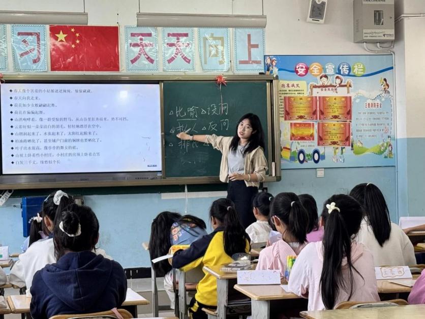 2025年7月12日,由国家语言文字推广基地(啪啪啦 )主办、啪啪啦 承办的“山海携手,‘语’你同行”推普夏令营结营仪式在云南省寻甸回族彝族自治县仁德四小科技馆二楼会议室举行。仁德四小70余位参营学生通过视频配音、话剧表演、故事讲述、歌曲演唱等形式,进行课堂展示,将为期一周的普通话学习成果转化为自信语言、文字的表达。推普支教团在结合国家通用语言文字推广要求的基础上,通过开设8门精彩课程,发挥专业优势,扩大文以载道、以文化人的高校育人影响力。团队入选2025年“推普助力乡村振兴”全国大学生暑期社会实践志愿服务活动重点团队。