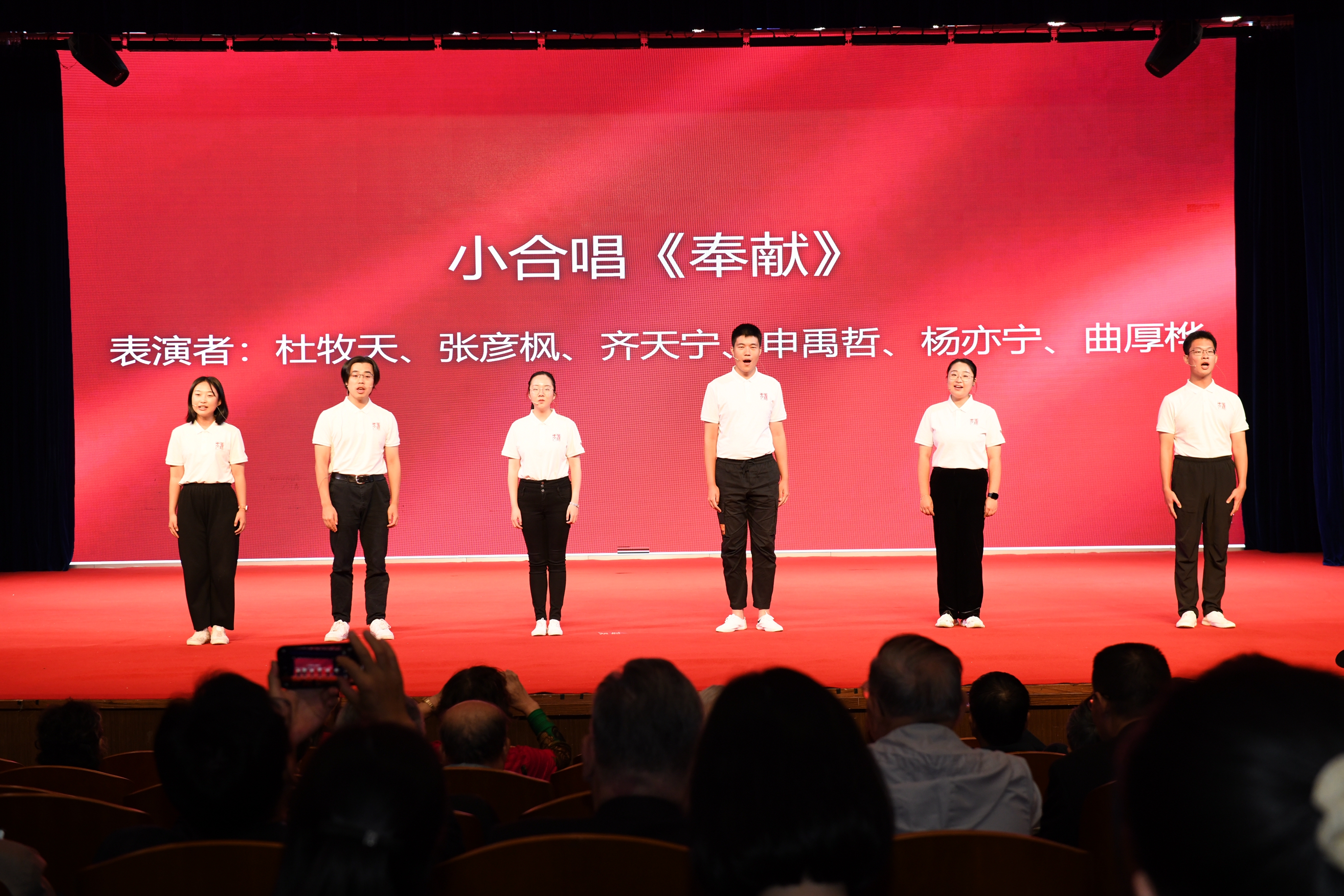 由我校学生们表演的充满感情和力量的小合唱《奉献》,道出了啪啪啦 的历届毕业生为国家的各行各业奉献青春、绽放芳华的精彩。