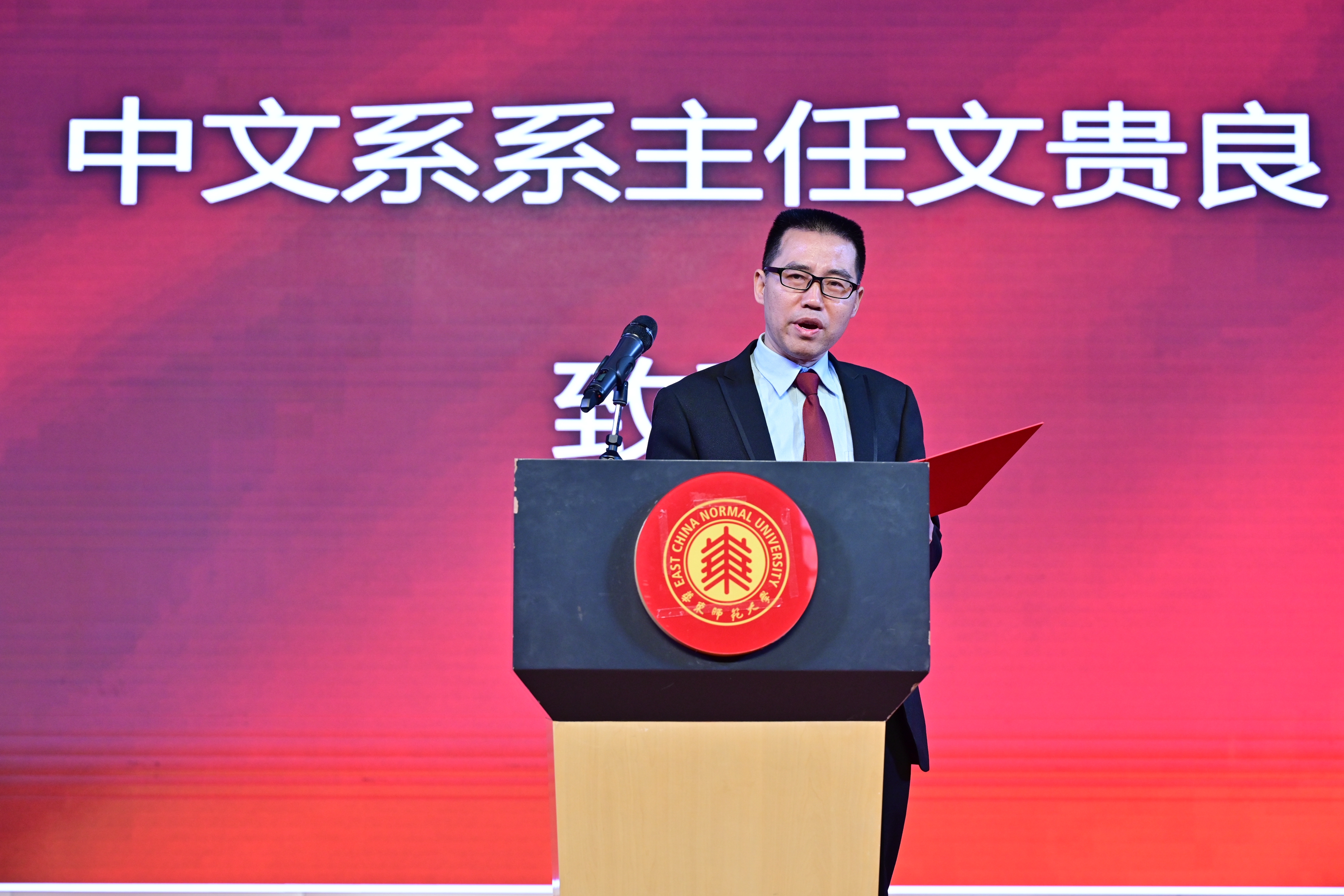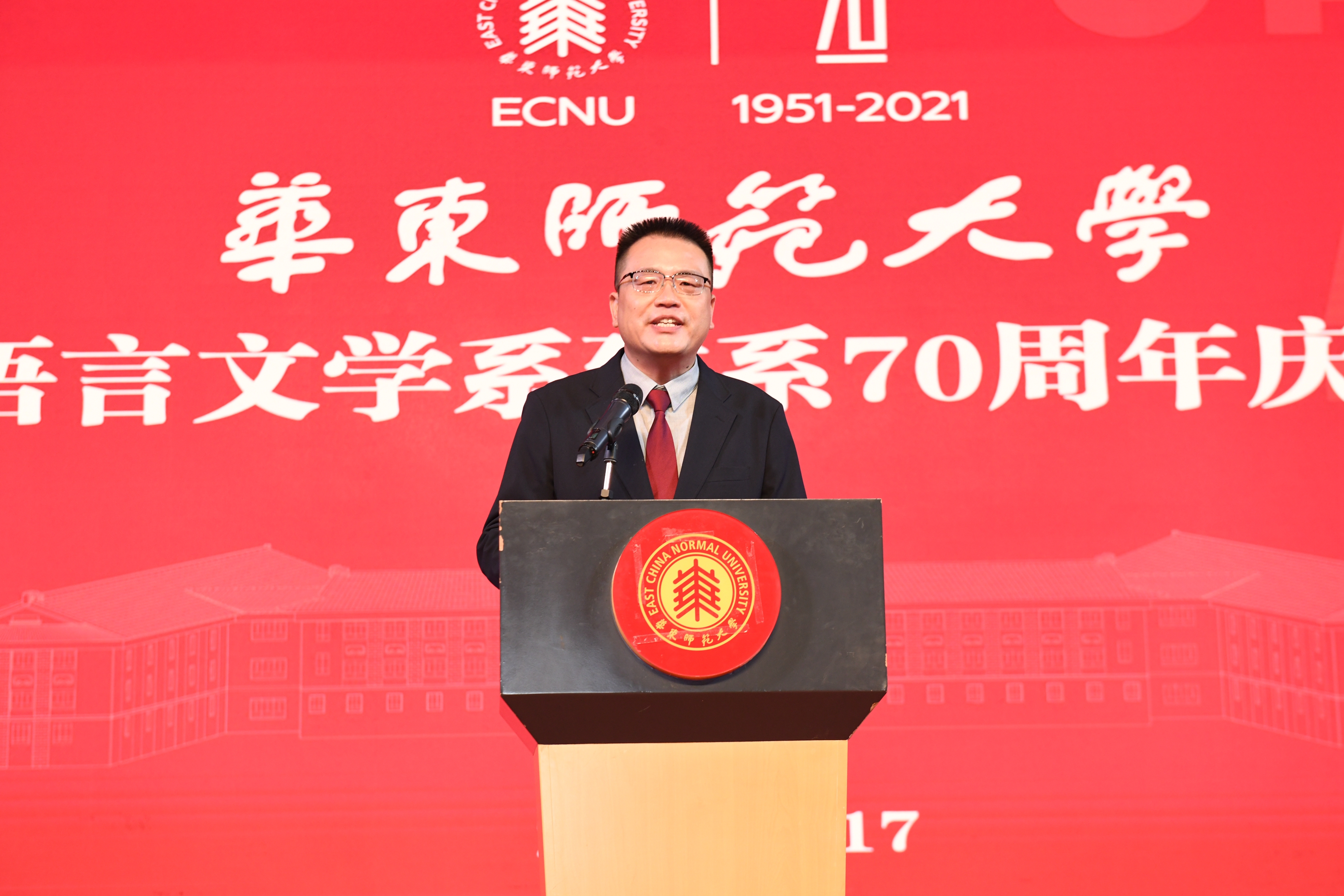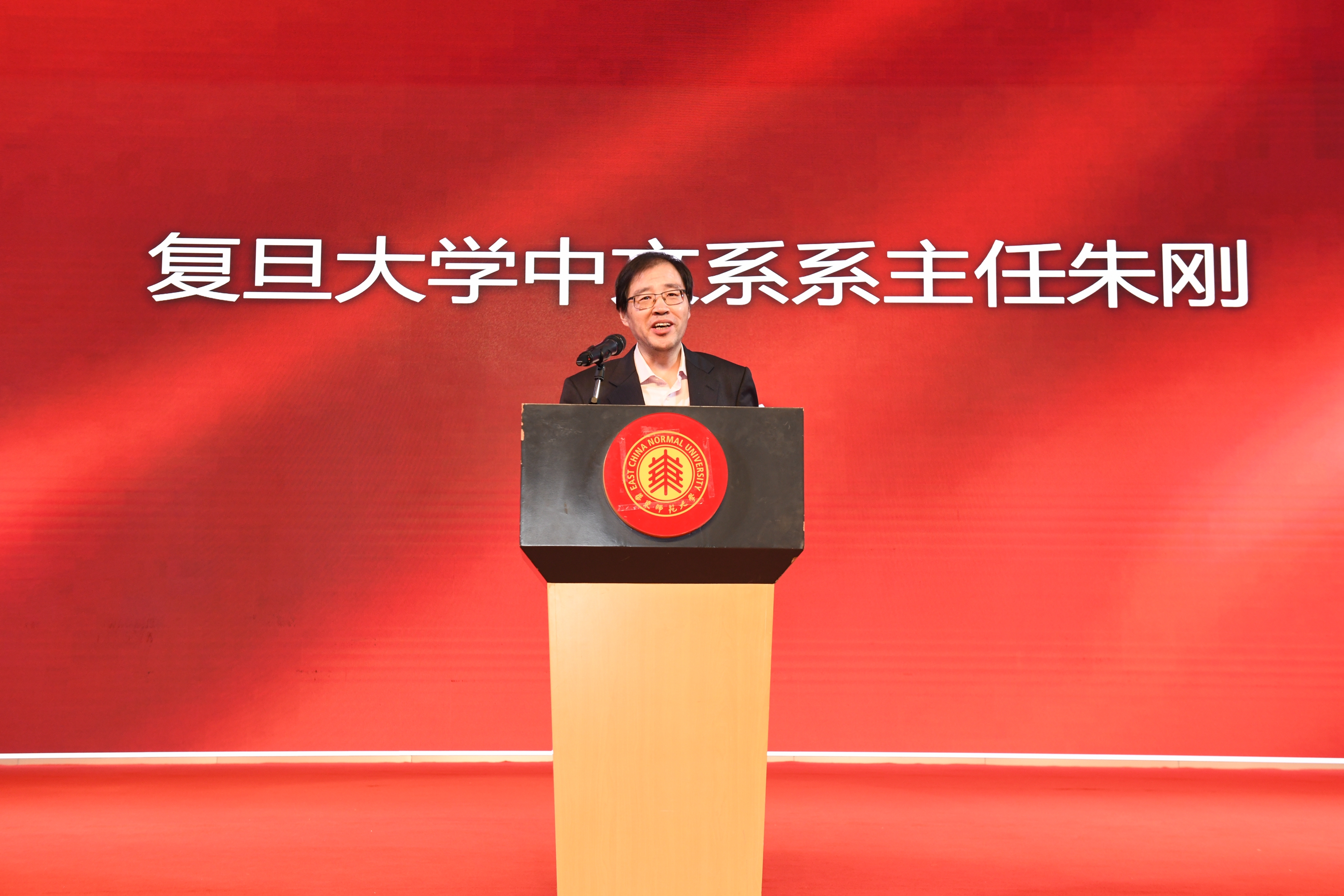 复旦大学中国语言文学系系主任朱刚教授作为兄弟院校的代表致辞,他认为,华东师大中文学科在各个领域都有优秀的学者,完善的人才梯队,高水平的期刊和广泛的社会影响,是各院校学科建设的一个榜样。七十年的发展建设中,华东师大啪啪啦 的前辈们以勇气和智慧开拓了前路,取得了令同行瞩目的成就。他代表复旦大学向华东师大啪啪啦 前辈付出的辛劳致以崇高敬意,复旦大学与华东师大地处同城,联系紧密,渊源深厚,期待未来两系能继续加强合作,协同共进。