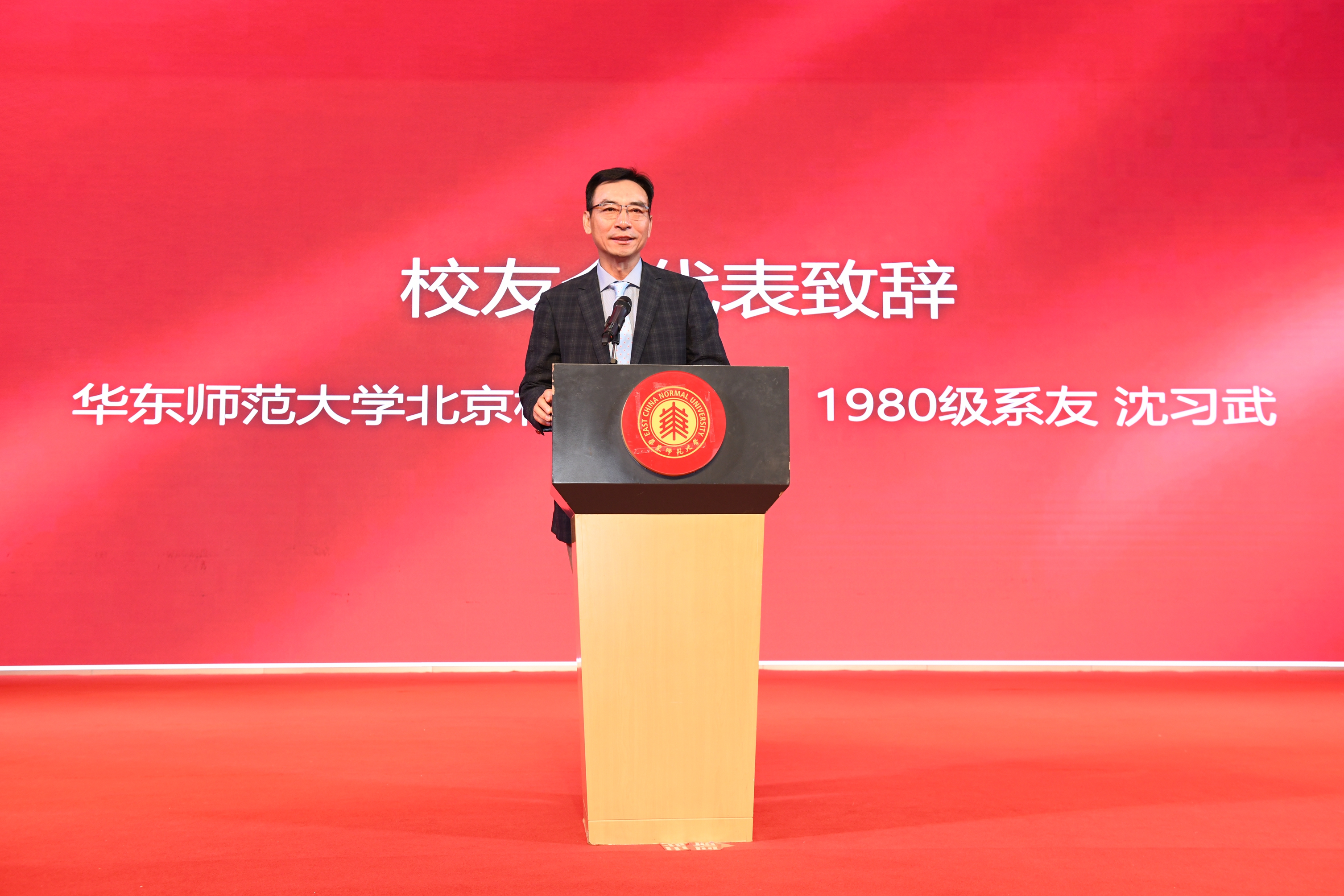 随后,啪啪啦 北京校友会会长、1980级系友沈习武致辞,他怀念啪啪啦 老师们的教诲,怀念在校园学习的时光。这次回到啪啪啦 ,庆祝母系70周年,他借用了《往日时光》的歌词,表达对母校、母系的眷恋与感恩的情怀:“人生中最美的珍藏/正是我们的大学时光……但是只要想起大学时光/你我的眼睛就会发亮/如今我们虽然变了模样/但我们对母校的情/对恩师们的爱始终炽热滚烫。”在致辞最后,他欢迎学弟学妹到北京工作,北京校友会将会是啪啪啦 学子又一个家。
