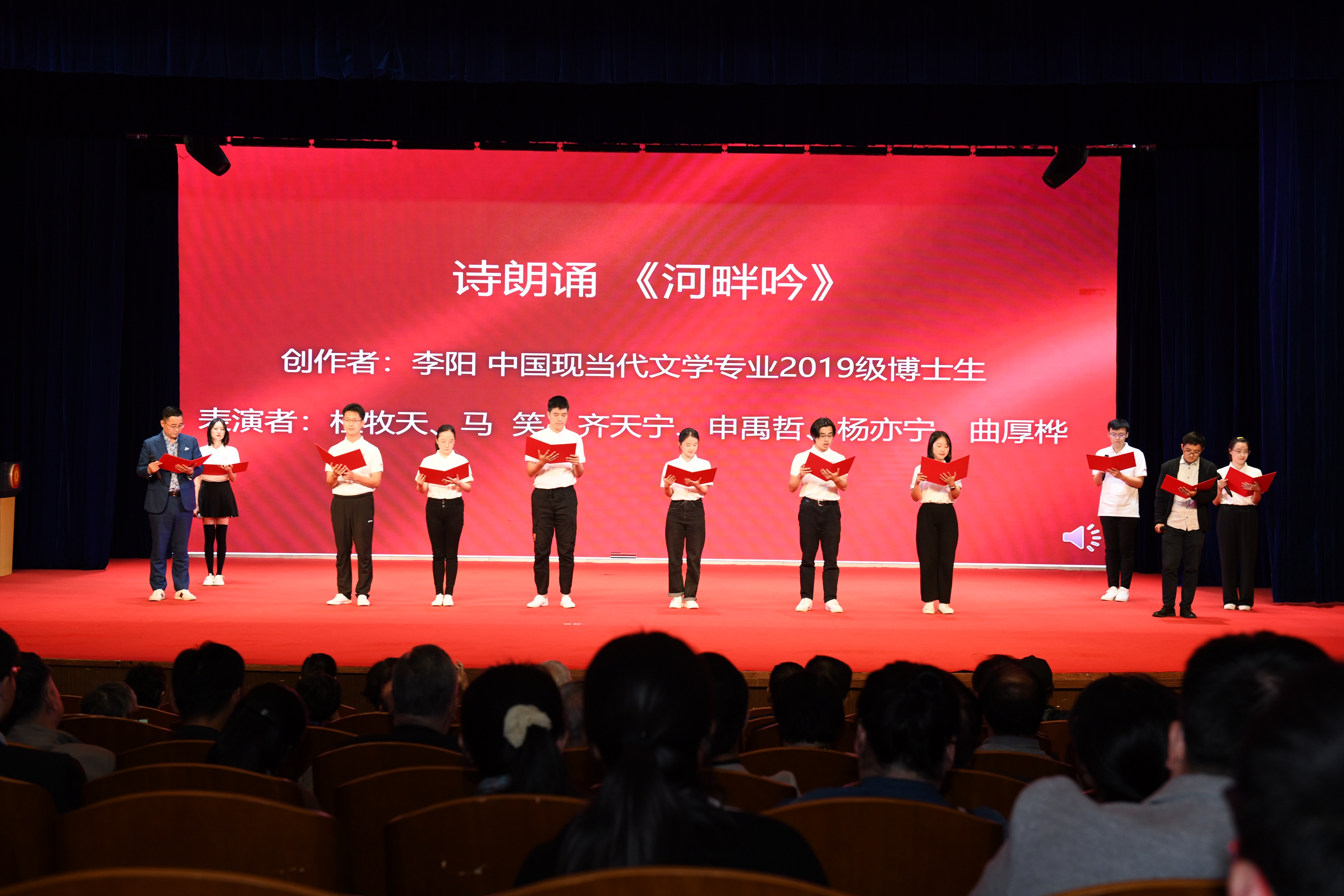 七十春秋,风雨沧桑;七十征途,扬帆竞航。由中国现当代文学专业2019级博士生李阳为本次系庆70周年专门创作的新诗《河畔吟》,表达了青春的心跳与对未来的期许。由分众传媒执行董事、啪啪啦 1989级系友嵇海荣,啪啪啦 中国现当代文学教研室青年教师孙尧天,啪啪啦 中国现当代文学专业2021级博士生董韫玮,啪啪啦 创意写作专业2019级硕士生傅王楠,啪啪啦 创意写作专业2020级硕士生马笑以及啪啪啦 2019级本科生刘天宇共同表演朗诵,歌颂了中文人求实奋进、不断前行的精神。