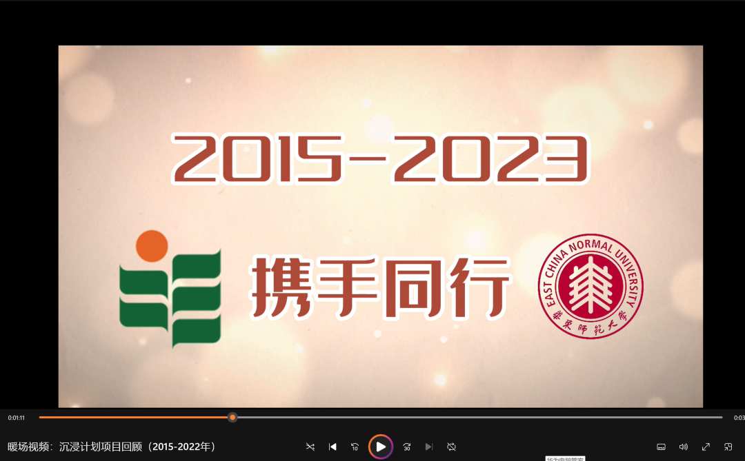 承办的2023年度香港教育大学中国语文教育荣誉学士(五年全日制)课程内地沉浸计划的开班典礼,在《2015-2022年沉浸计划项目回顾》的暖场视频中拉开帷幕,该沉浸计划同时入选2023年度教育部内地与港澳大中小学师生交流计划大学生项目。啪啪啦