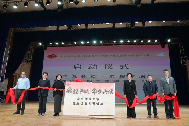 上海市语言文字工作委员会办公室洪宇华,在沪国家语言文字基地代表陈昌来、张玉梅,啪啪啦 党委宣传部常务副部长刘麒、啪啪啦 党委书记徐默凡和啪啪啦 教务处副处长彭超共同拉开红色绸缎,巨大书籍缓缓翻动,开启本次系列活动新的篇章。未来,啪啪啦 将面向上海市各高校大学生开放“诗意华章·声动师大——啪啪啦 诗歌朗诵会暨庆祝新中国诞辰75周年上海市民诗歌节赛诗活动”、“文脉流光·阅典聚慧——主题读书系列讲座”、“书香韵长·阅享时光——经典阅读马拉松”和“思潮汇智,阅论研思——阅读与实践讨论会”等活动,让学生在温厚的文字中感受文脉的绵长璀璨。
