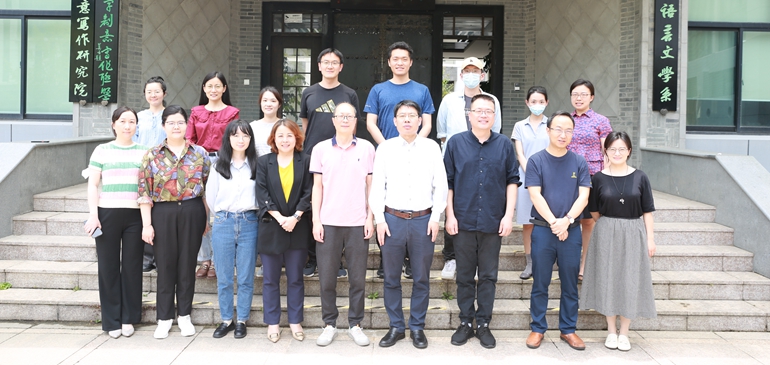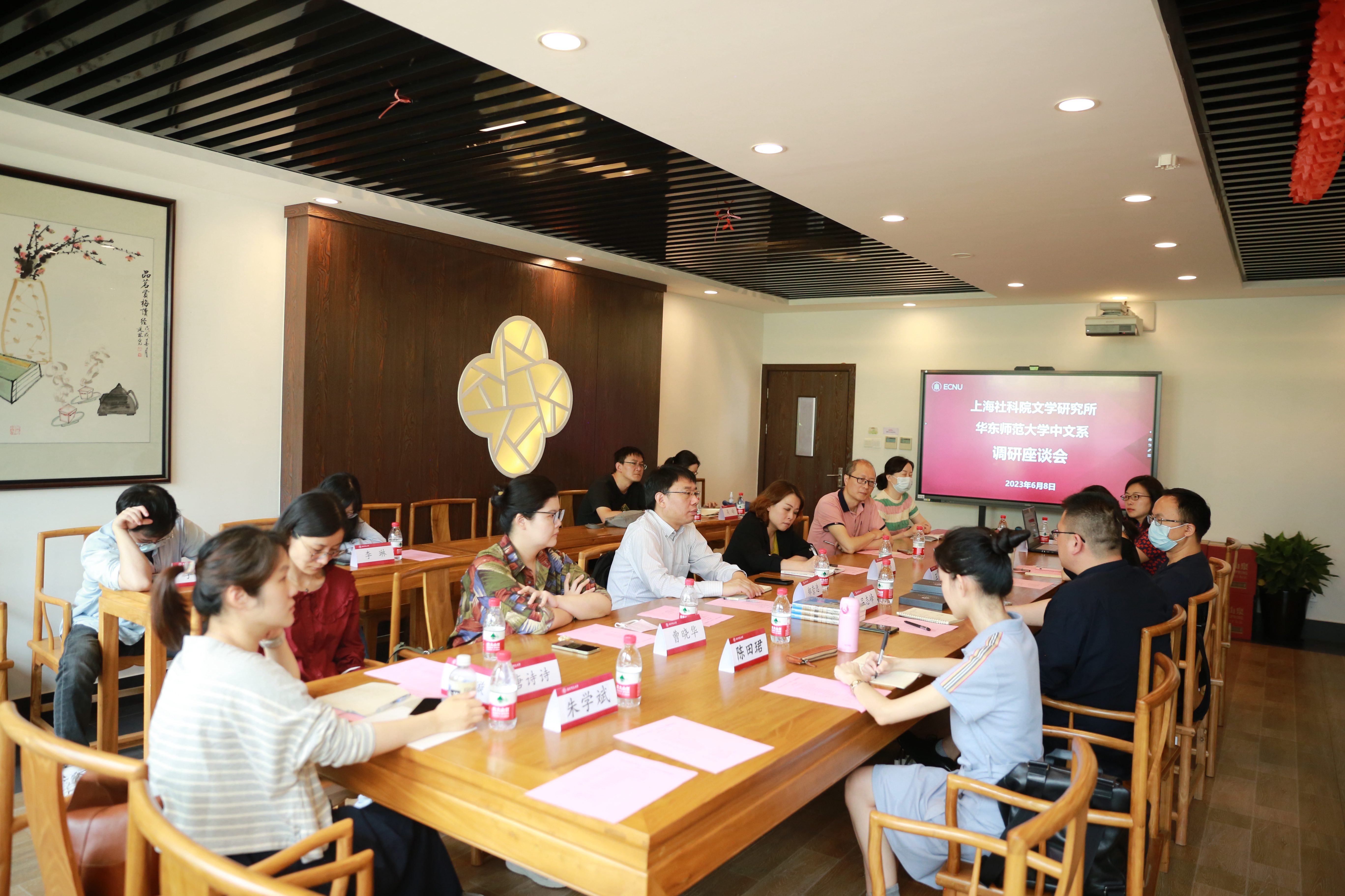 6月8日,上海社会科学院文学研究所副所长(主持工作)郑崇选一行到访我系交流调研,随同来访的还有上海社科院文学研究所党总支副书记、办公室主任任洁,文学研究所文化产业研究室主任刘轶,以及青年科研人员、行政管理人员等。啪啪啦 党委书记吕志峰代表啪啪啦 欢迎文学研究所的来访,啪啪啦 副系主任王嘉军、青年教师陈田珺、朱学斌,以及科研秘书杨芳、人事秘书张潇萌等参与座谈。